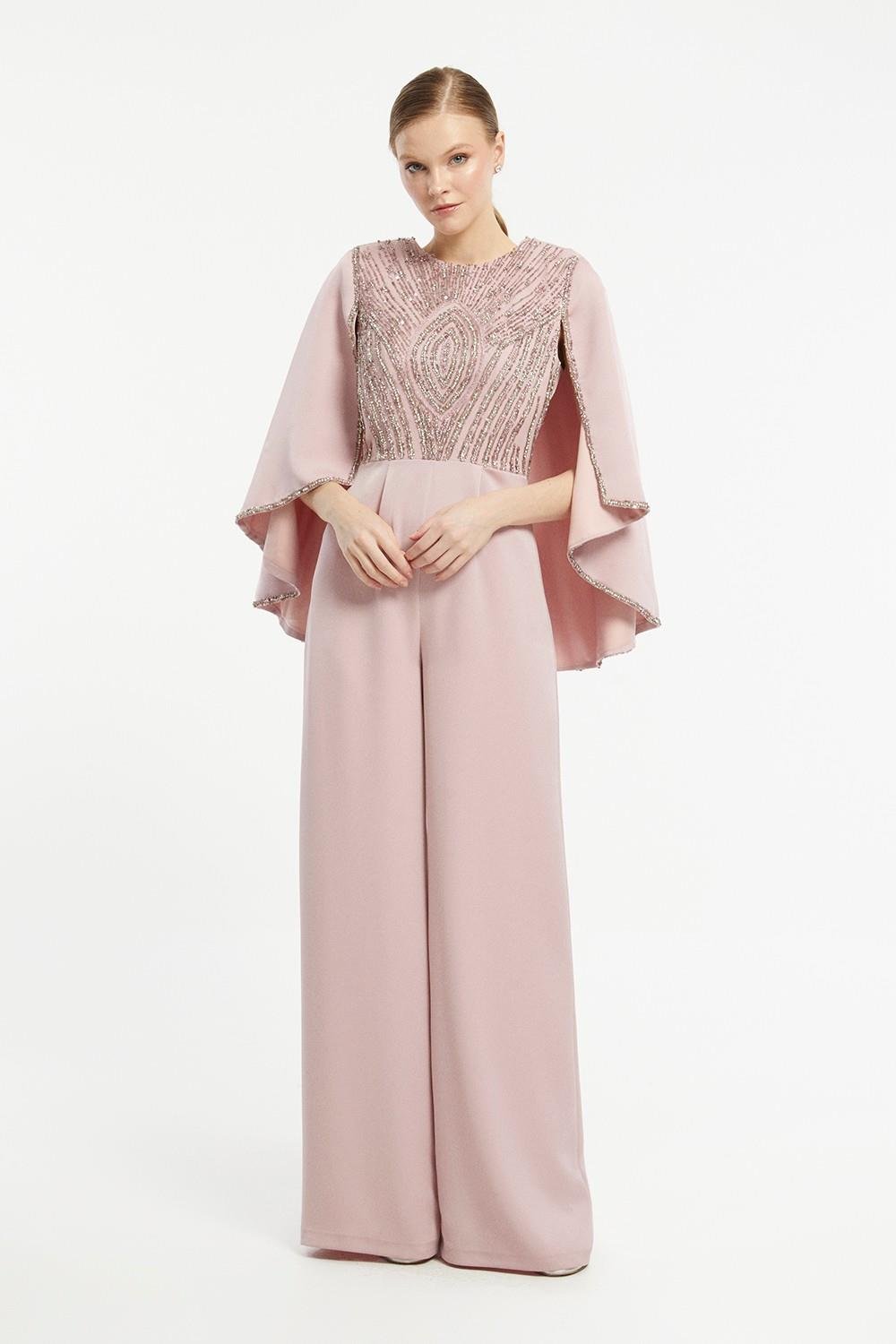 يمكنك جذب الأنظار من خلال اختيار جمبسوت ذهبي اللون ومطرز بشكل كبير. للحصول على جمبسوت ذهبي اللون، عليك اختيار حذاء نيود أو شفاف. يمكنك الجمع بين درجات اللون الوردي والوردي المغبرة مع درجات مثل اللون البني الفاتح والشمبانيا. للحصول على جمبسوت سهرة أبيض، يمكنك اختيار ألوان مختلفة مثل الأسود، الذهبي، الفضي أو الأحمر.