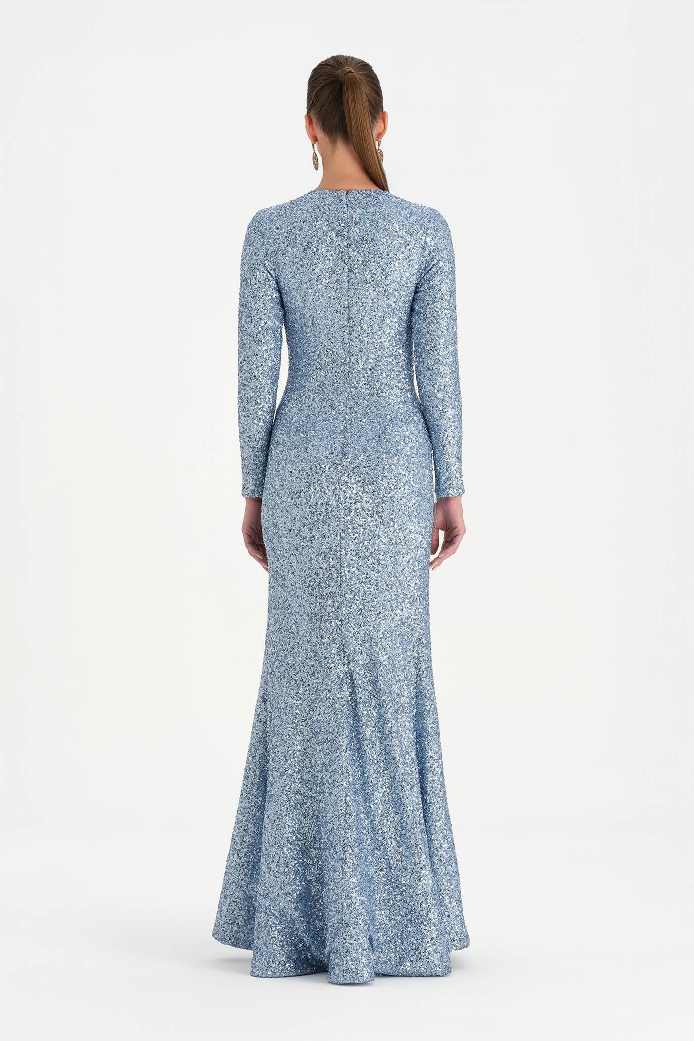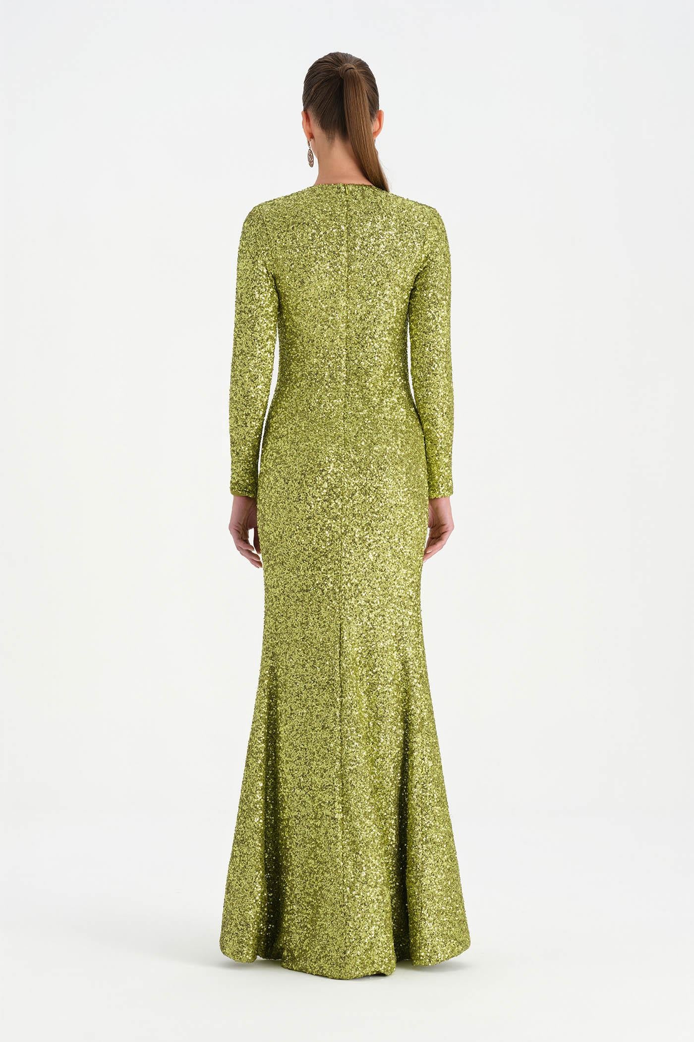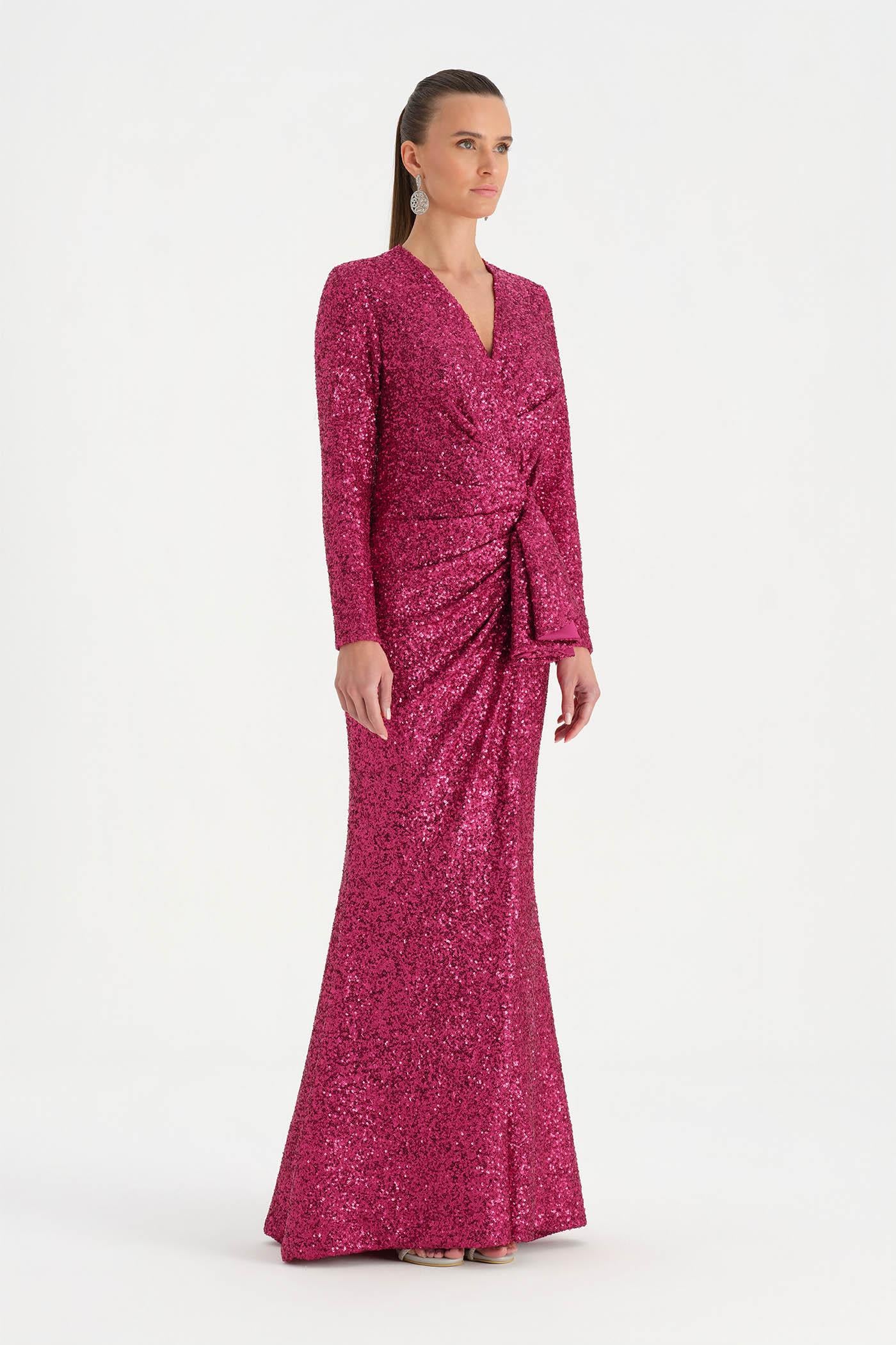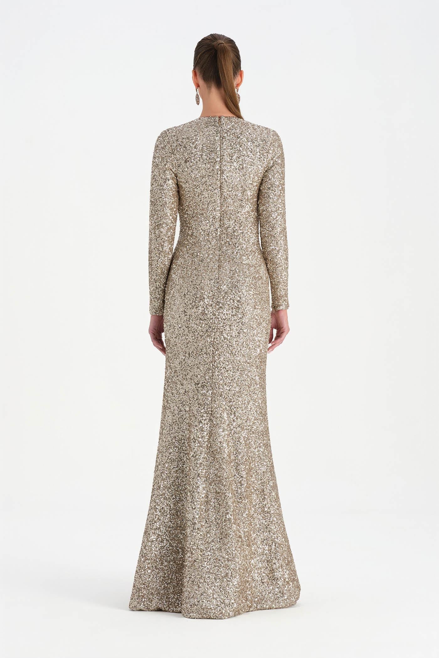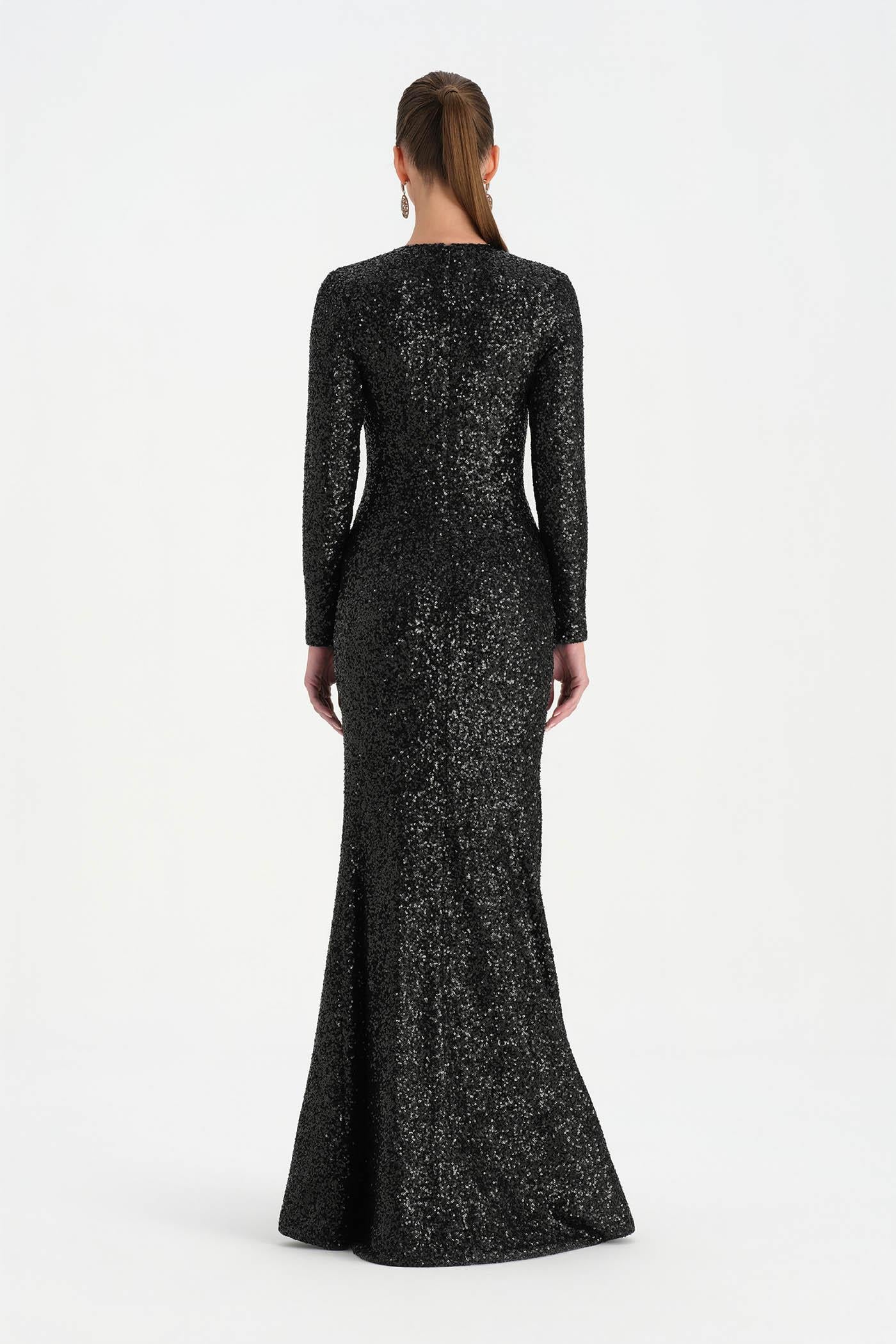 Payetli V Yaka Yırtmaçlı Drapeli Abiye Elbise – 26065C , Işıltılı payet dokusu ve zarif drapeleriyle tasarlanan bu abiye elbise, feminen ve etkileyici bir siluet sunar. V yaka formu üst bedeni zarif biçimde vurgularken, bel çevresindeki drape detayları tasarıma hareket kazandırır. Etek kısmındaki yırtmaç yürüyüşe zarif bir dinamizm katarken, özel davetler ve gece organizasyonları için sofistike ve dikkat çekici bir stil sunar.