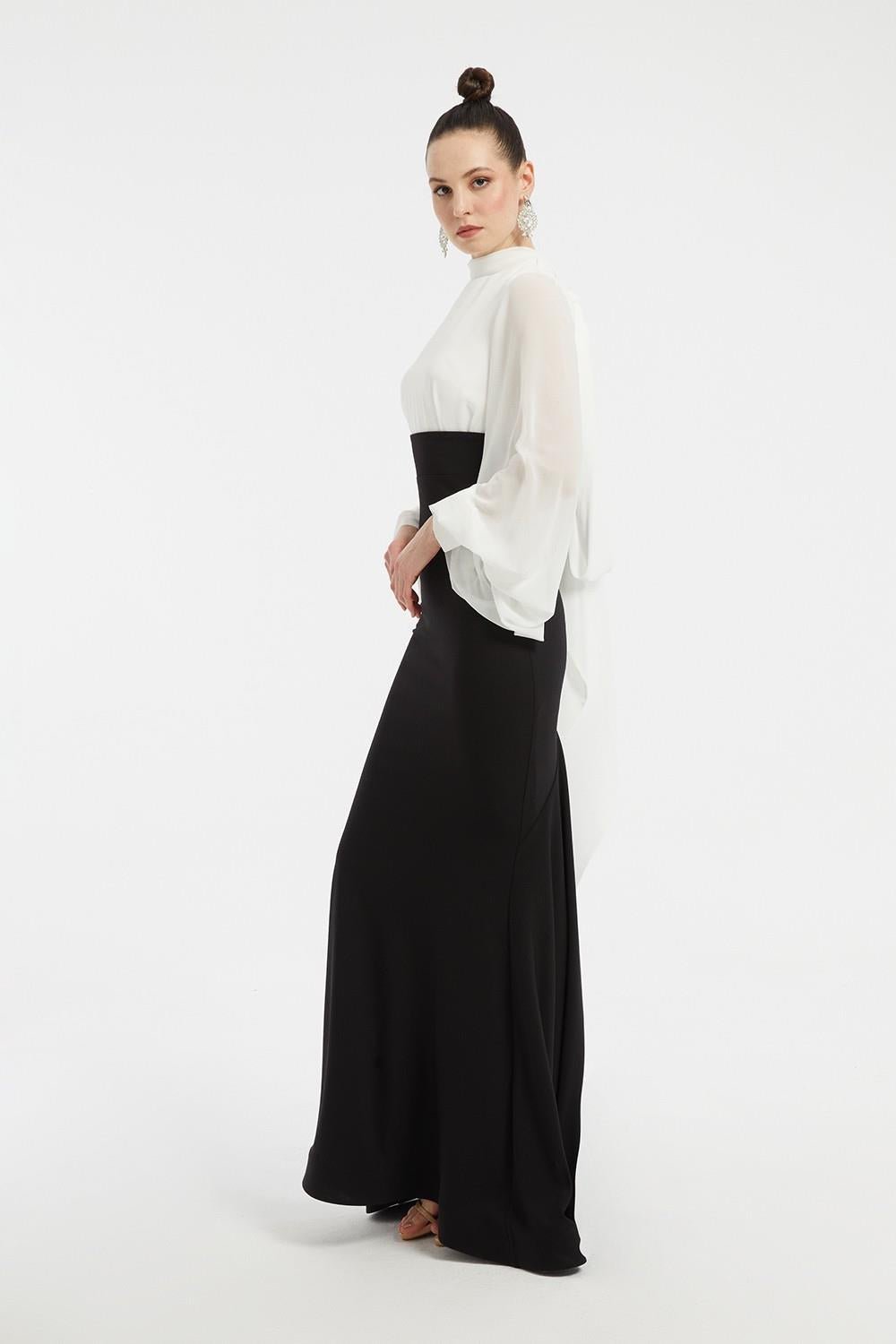 - Eğer bel bölgenizde fazlalık var ise iki renkli abiyeler sizin için ideal olacaktır. Yanlarda koyu renk ve orta bölümde açık renk abiye elbiselerle daha zayıf görünebilirsiniz.