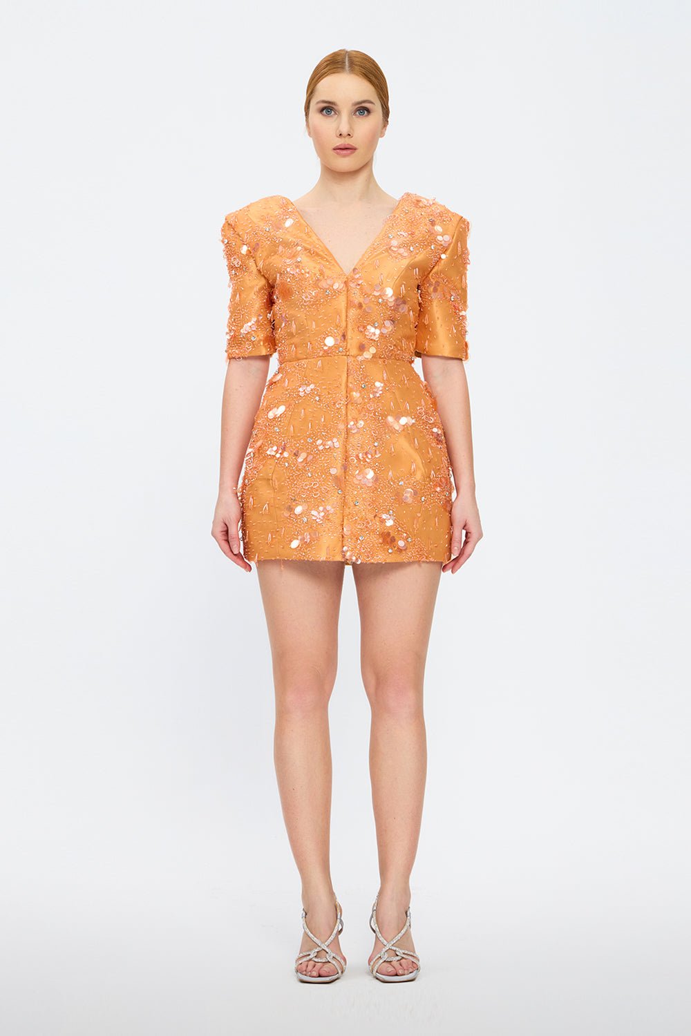 The color of summer, the season when nature and people come alive, should also be vibrant and energetic. Although it depends on preference, dark colors are mostly preferred in winter. You can adapt to the season by choosing vibrant and light colored dresses. In addition, patterned evening dress designs also harmonize with the energy of the summer months. Since the air temperature is already high, you can choose mini or midi evening dresses to move comfortably during the event.