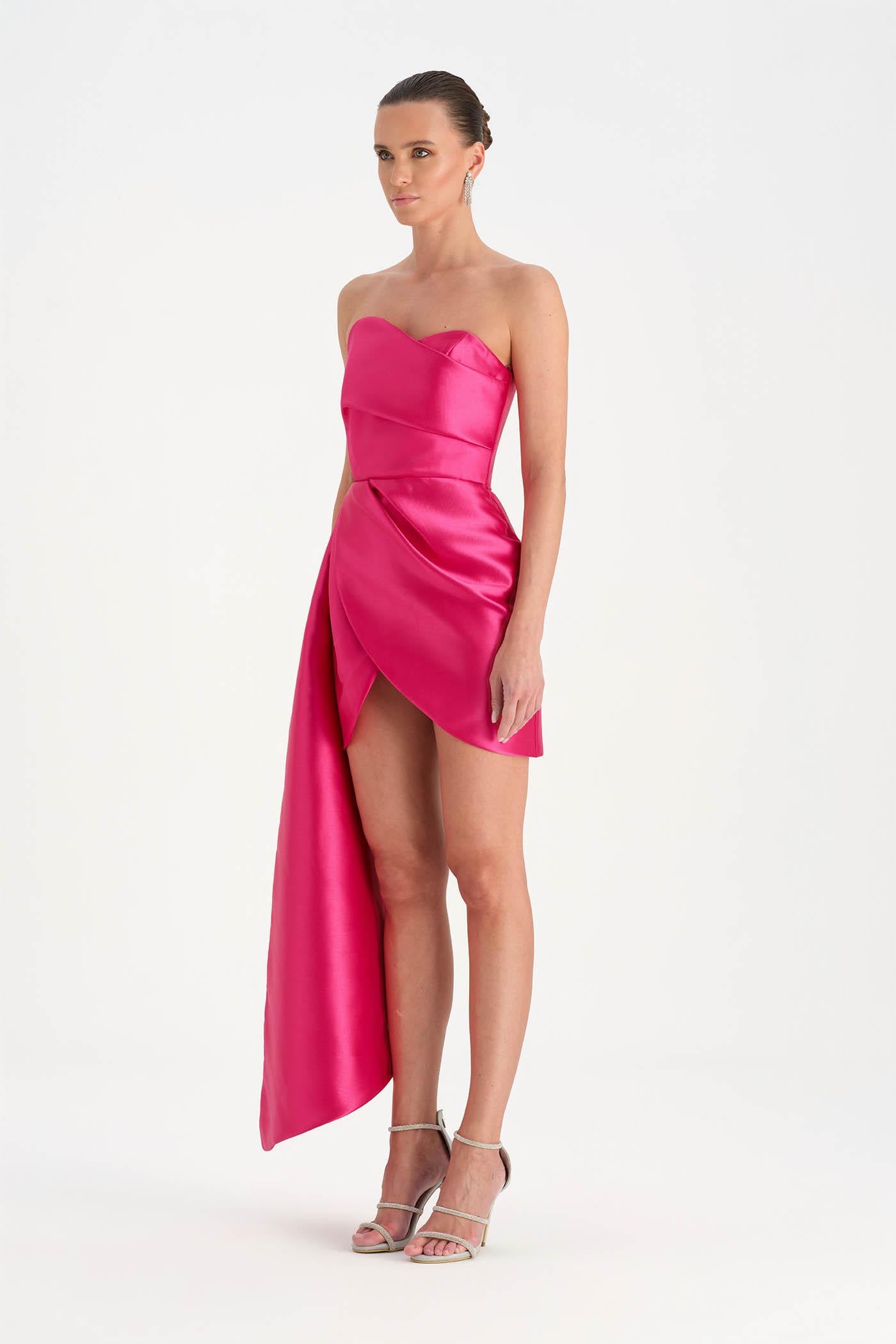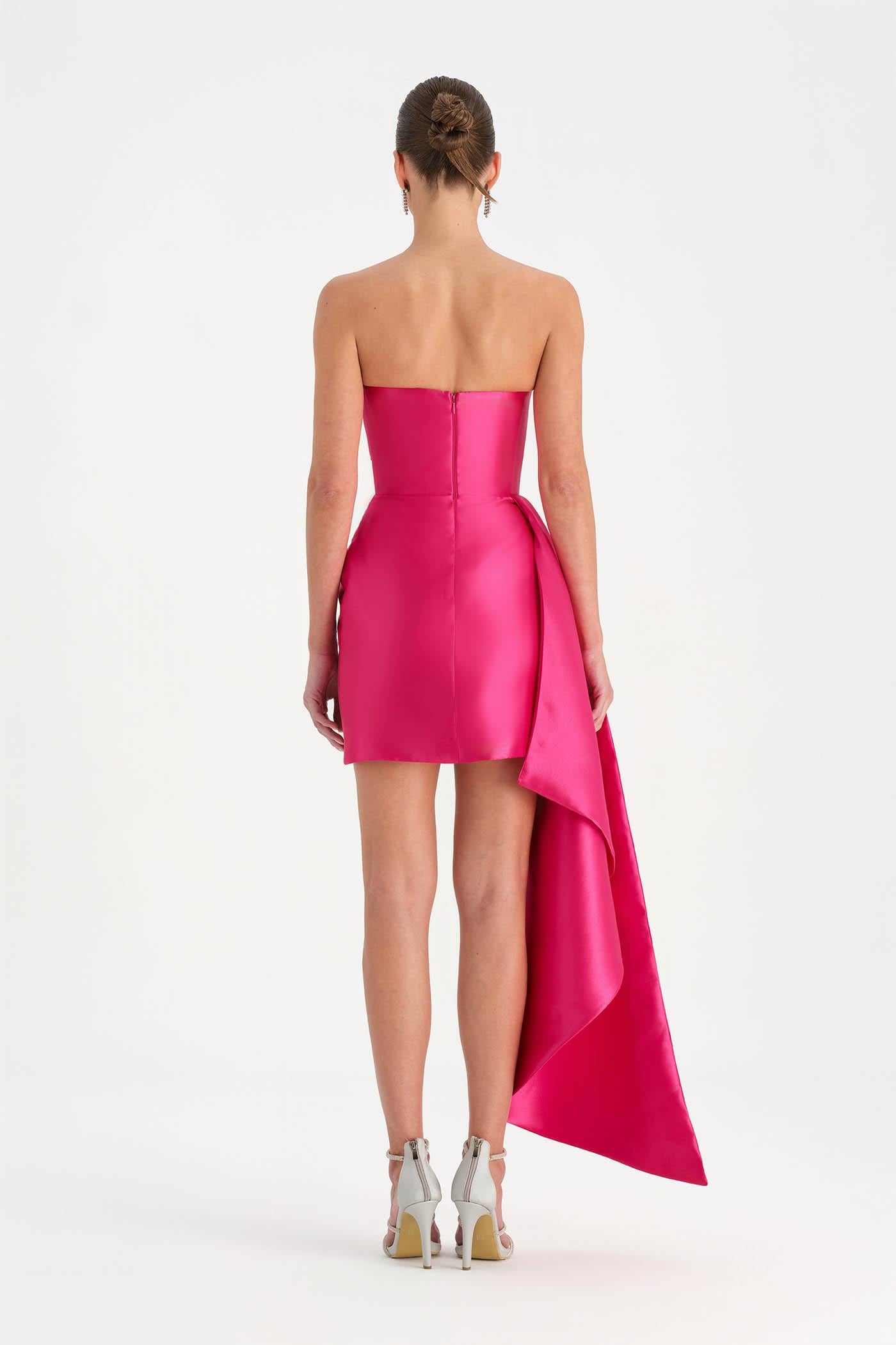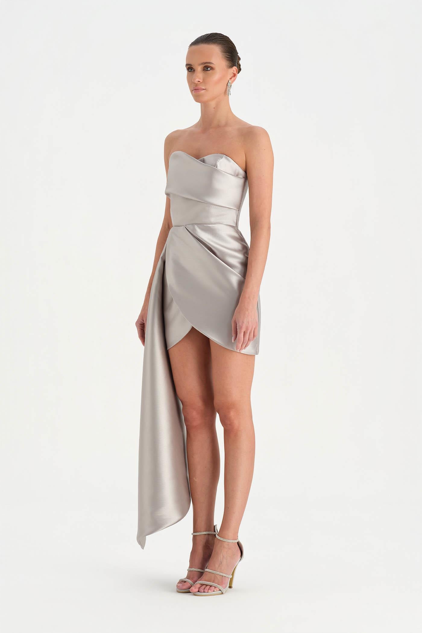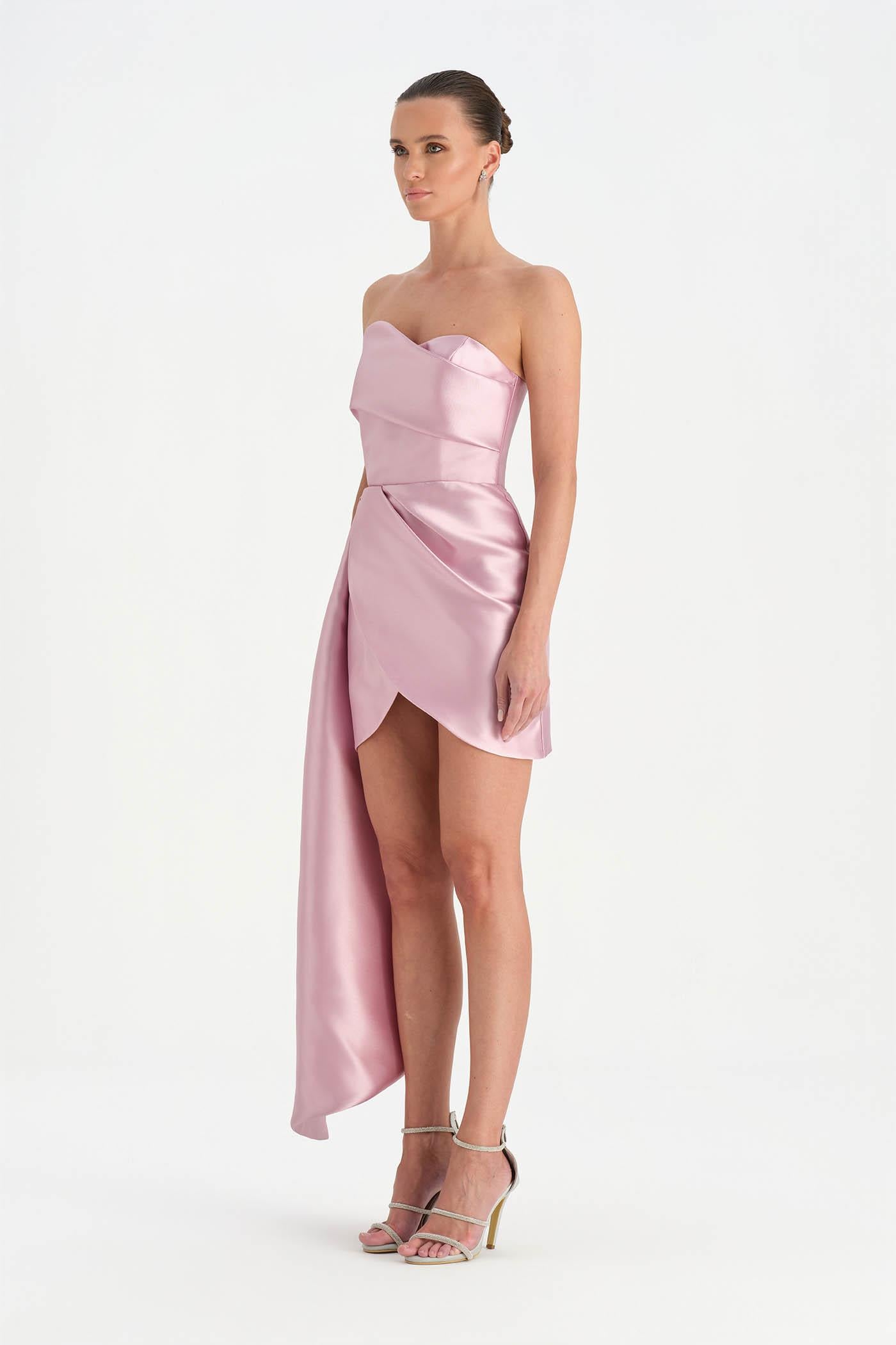Belden Kuyruklu Mini Kısa Abiye Elbise – 26137C , Modern ve iddialı tasarımıyla dikkat çeken bu mini abiye elbise, straplez kesimi ve heykelsi formuyla güçlü bir siluet sunar. Bel kısmından uzanan kuyruk detayı tasarıma dramatik bir hareket kazandırırken, kısa etek formu dinamik ve modern bir görünüm oluşturur. Vücuda uyum sağlayan yapısı sayesinde özel davetler ve gece organizasyonlarında dikkat çekici bir stil sunar.