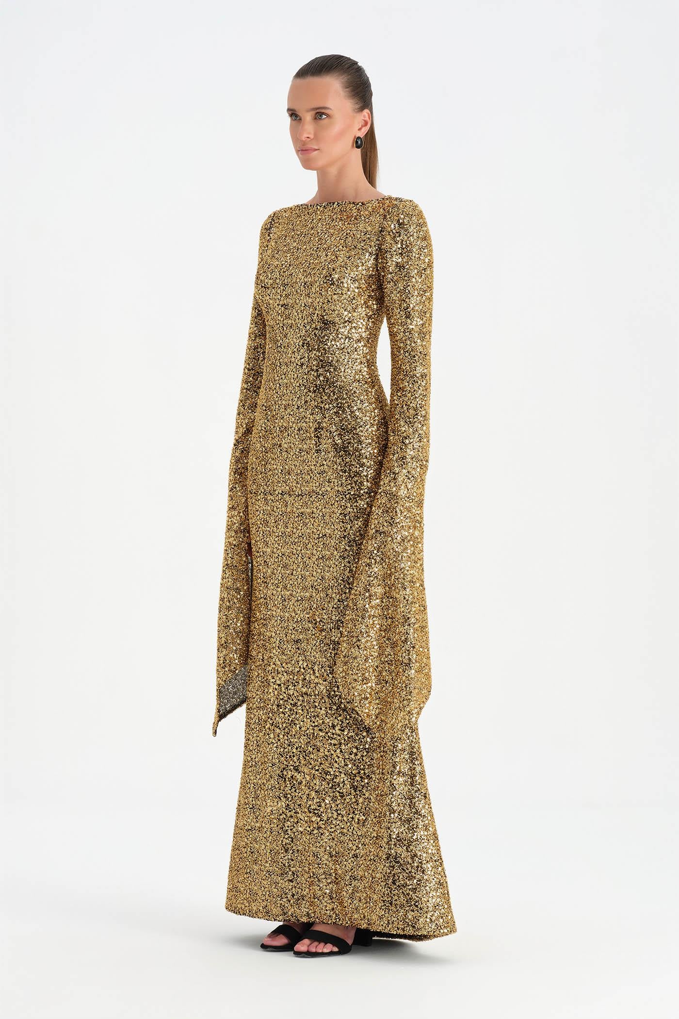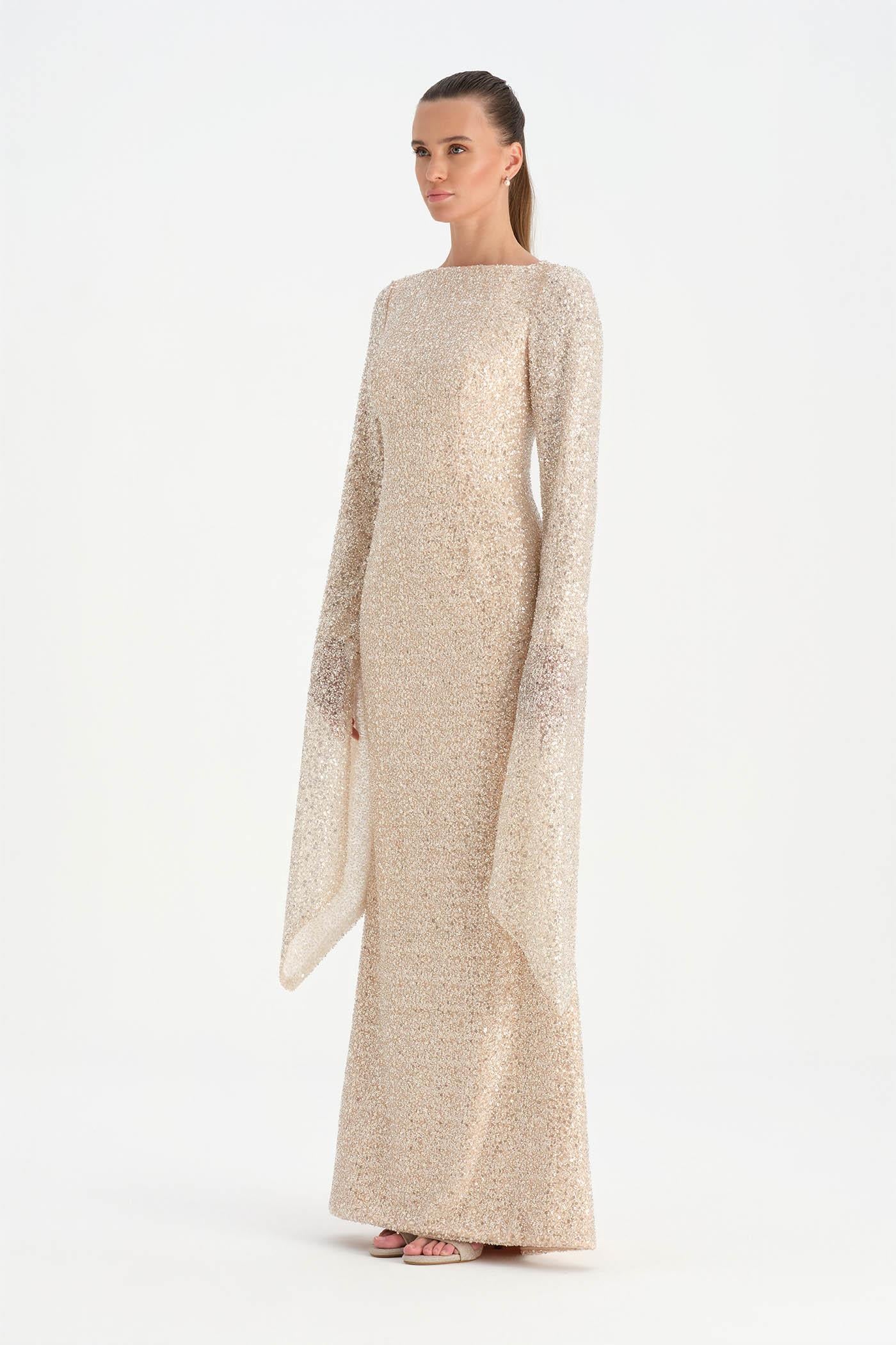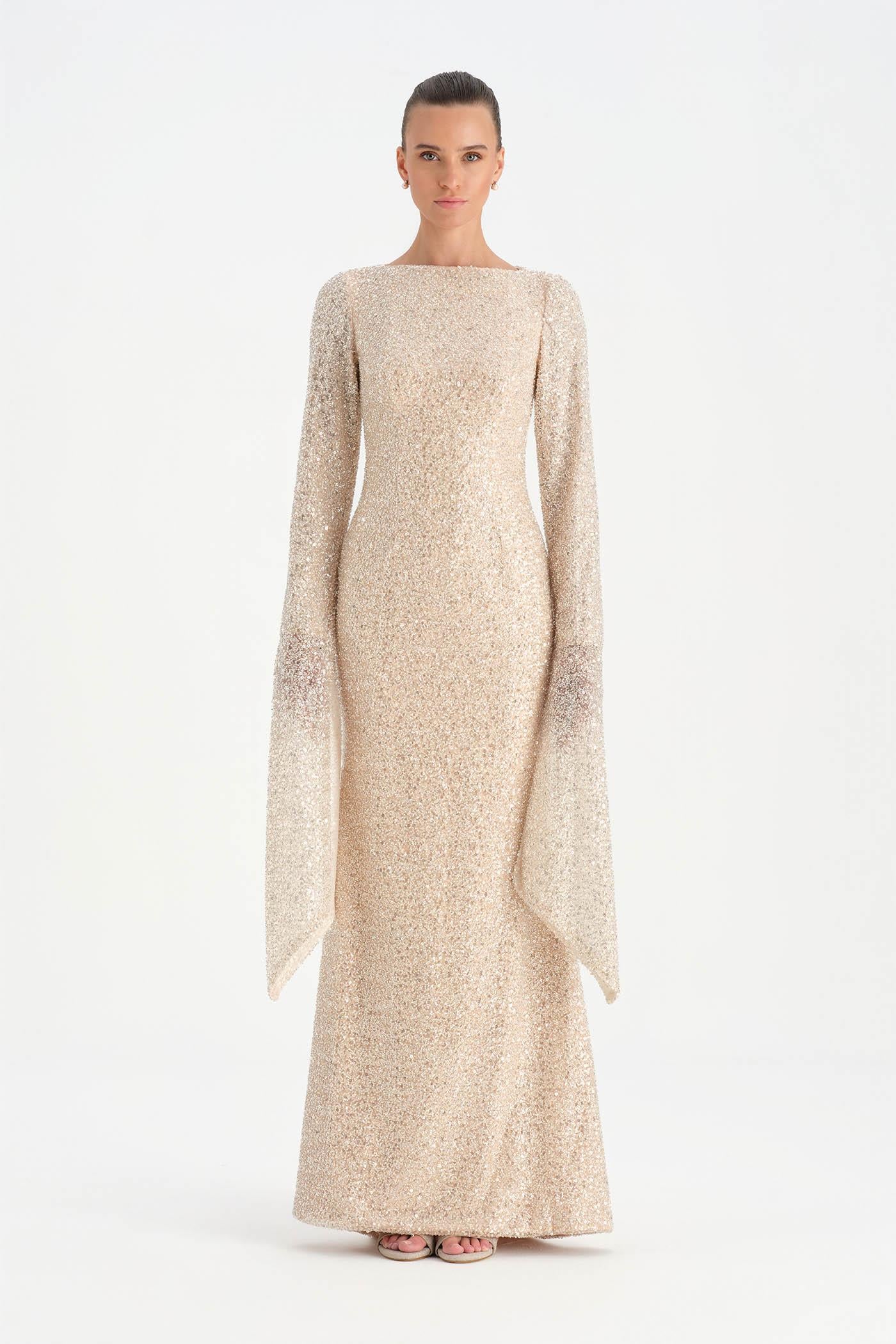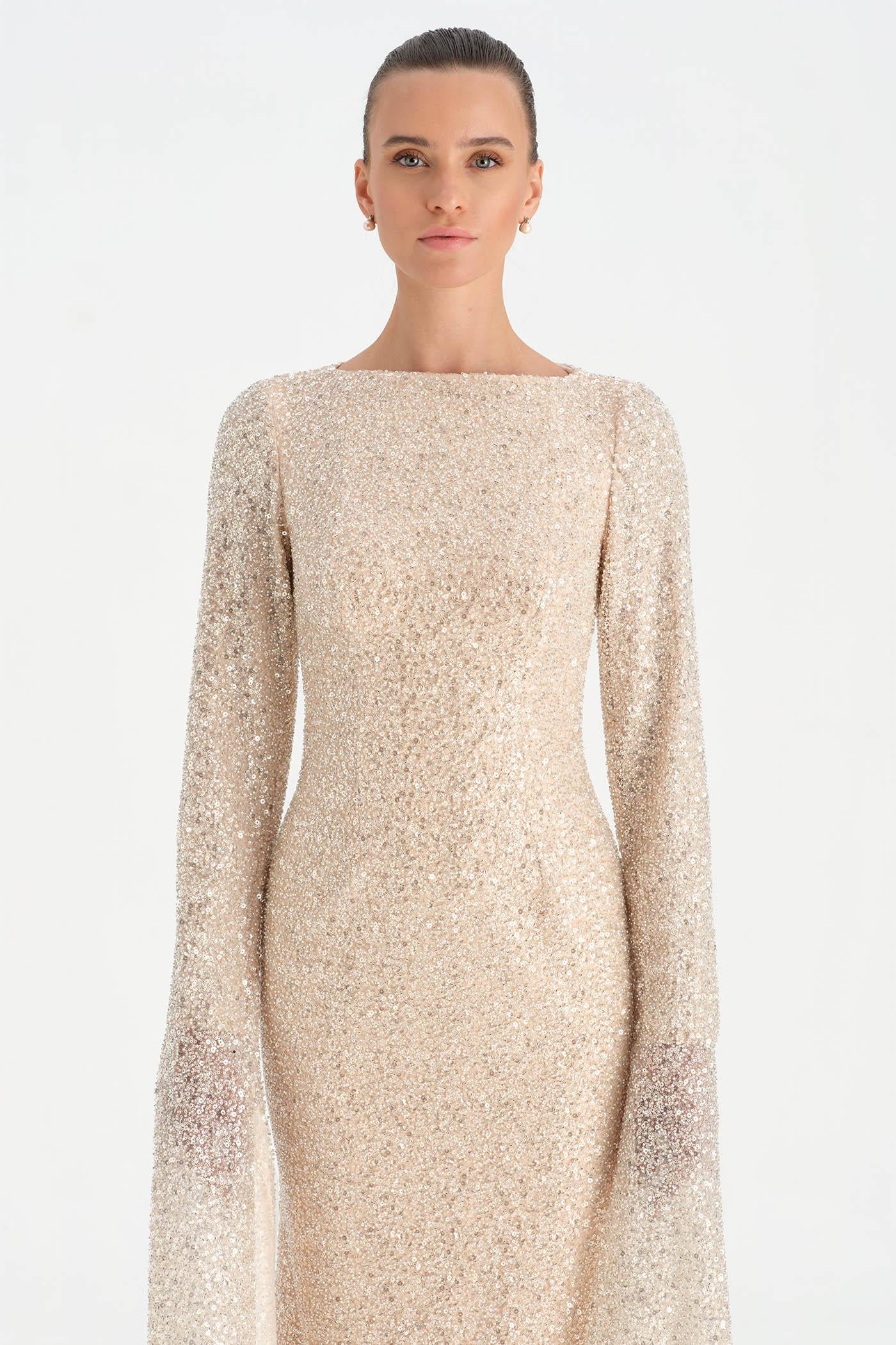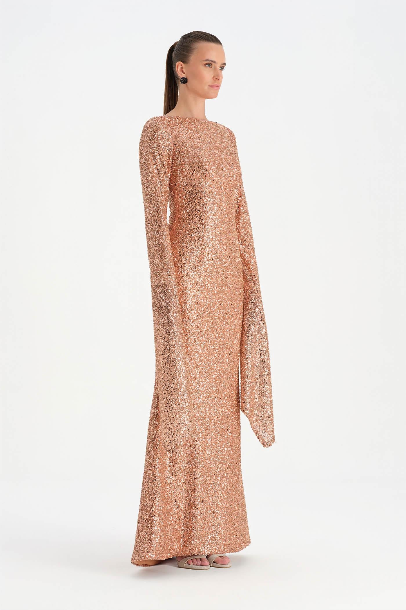 Taşlı Tesettür Abiye Elbise – 26070C , Zarif ve dengeli tasarımıyla öne çıkan bu tesettür abiye elbise, taş işlemeli dokusuyla sofistike bir görünüm sunar. Uzun ve akıcı formu vücut siluetini zarif biçimde tamamlarken, geniş ve pelerin etkisi yaratan kol detayı tasarıma özgün bir karakter kazandırır. Işıltılı dokusu ve sade çizgileriyle özel davetler ve şık organizasyonlar için zarif ve etkileyici bir seçenek oluşturur.