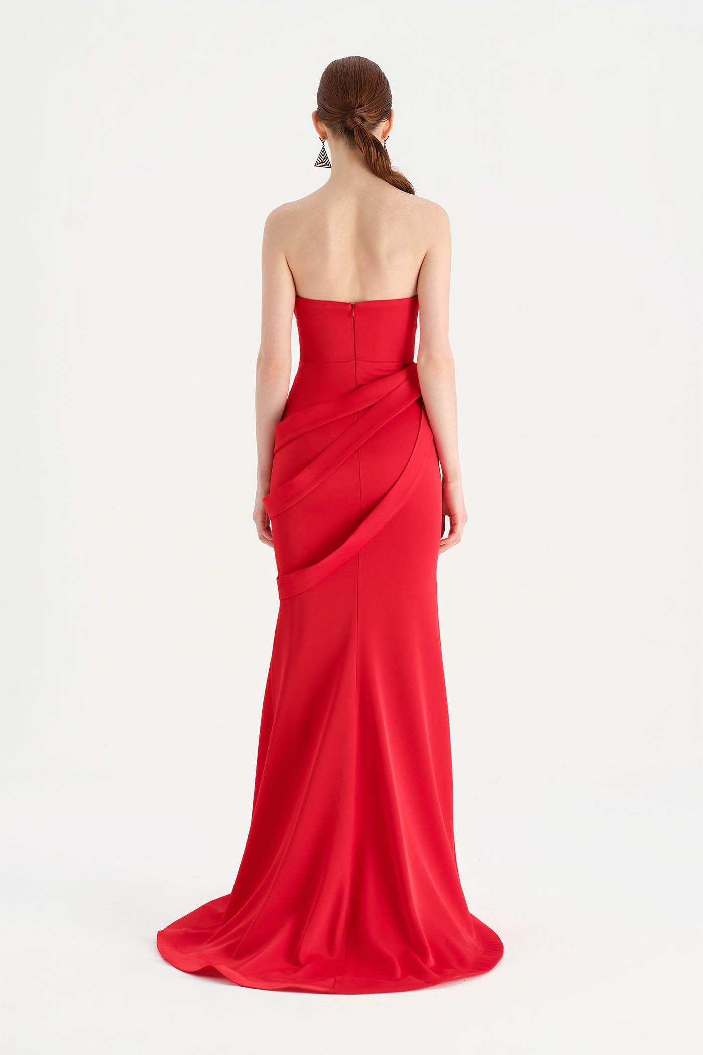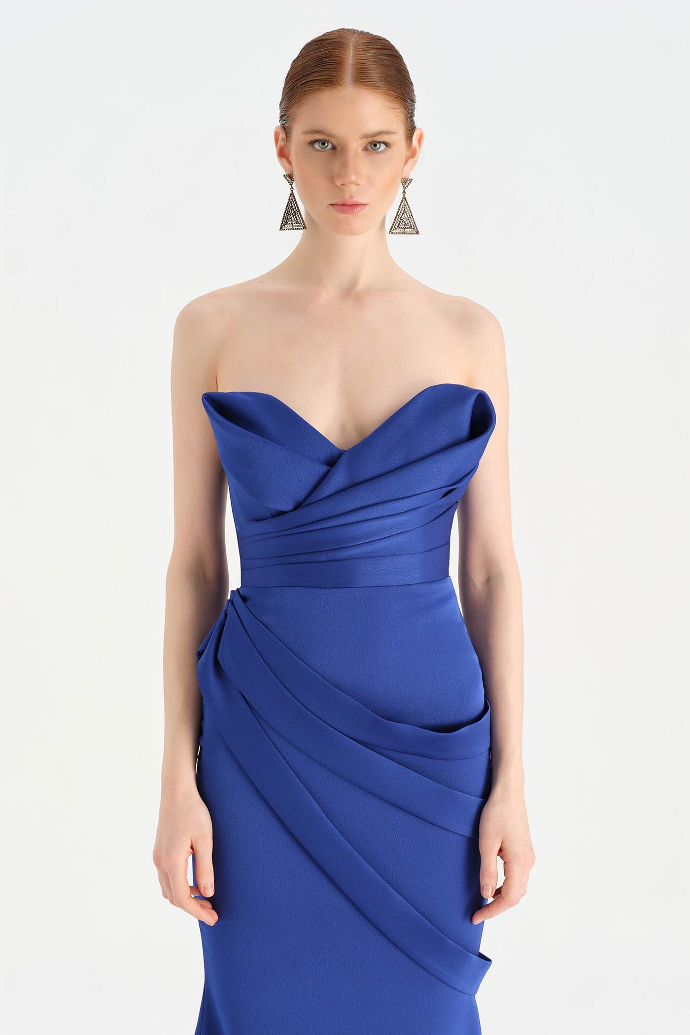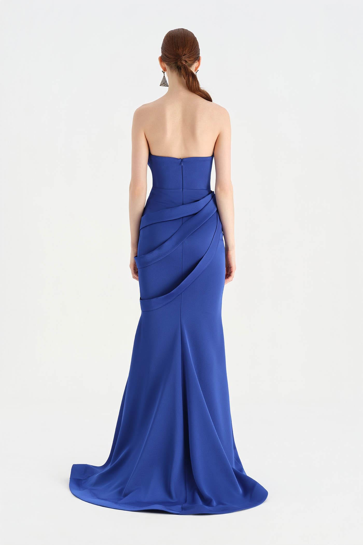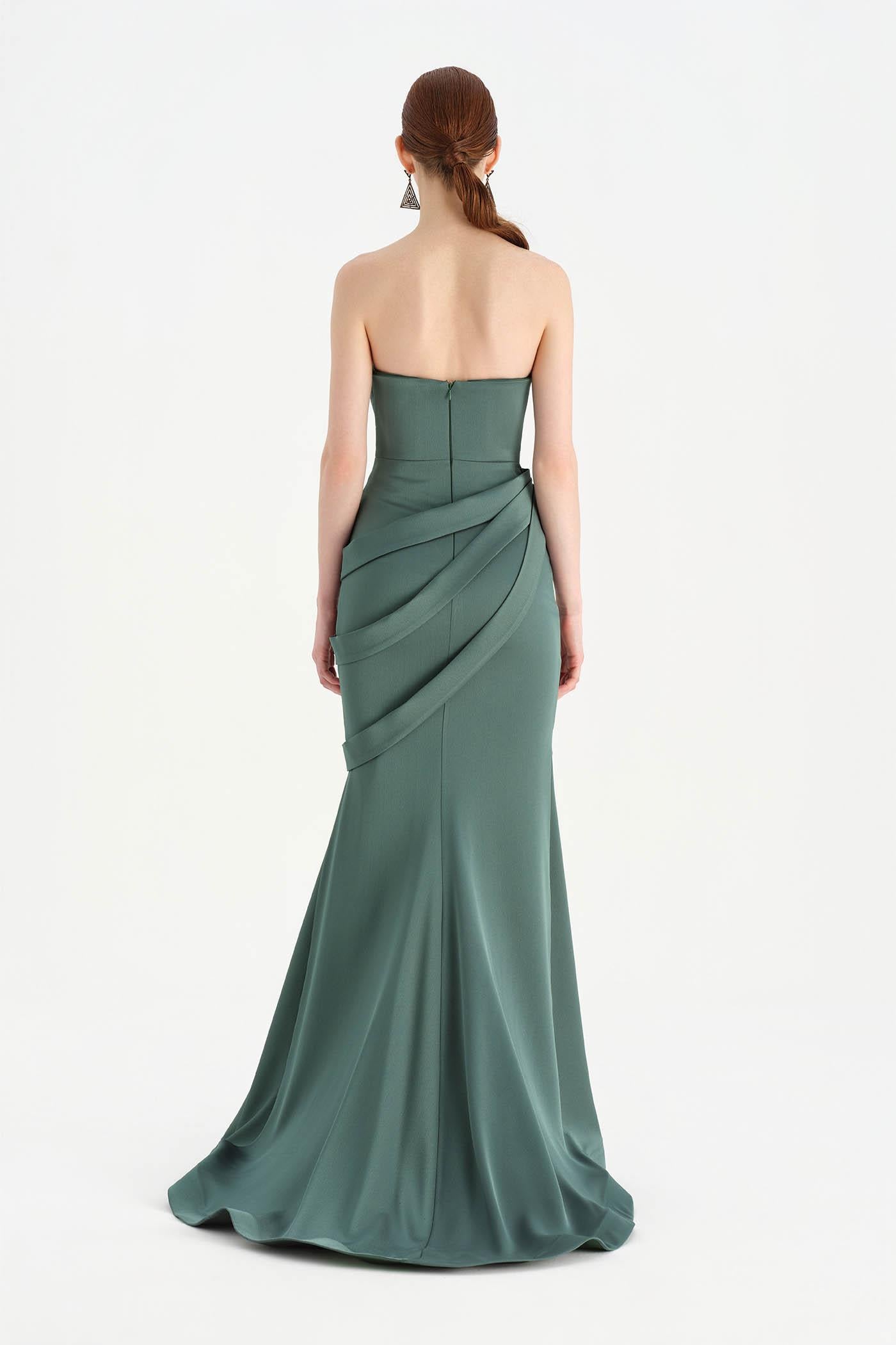Bant Detaylı Drapeli Balık Abiye Elbise - 26021C