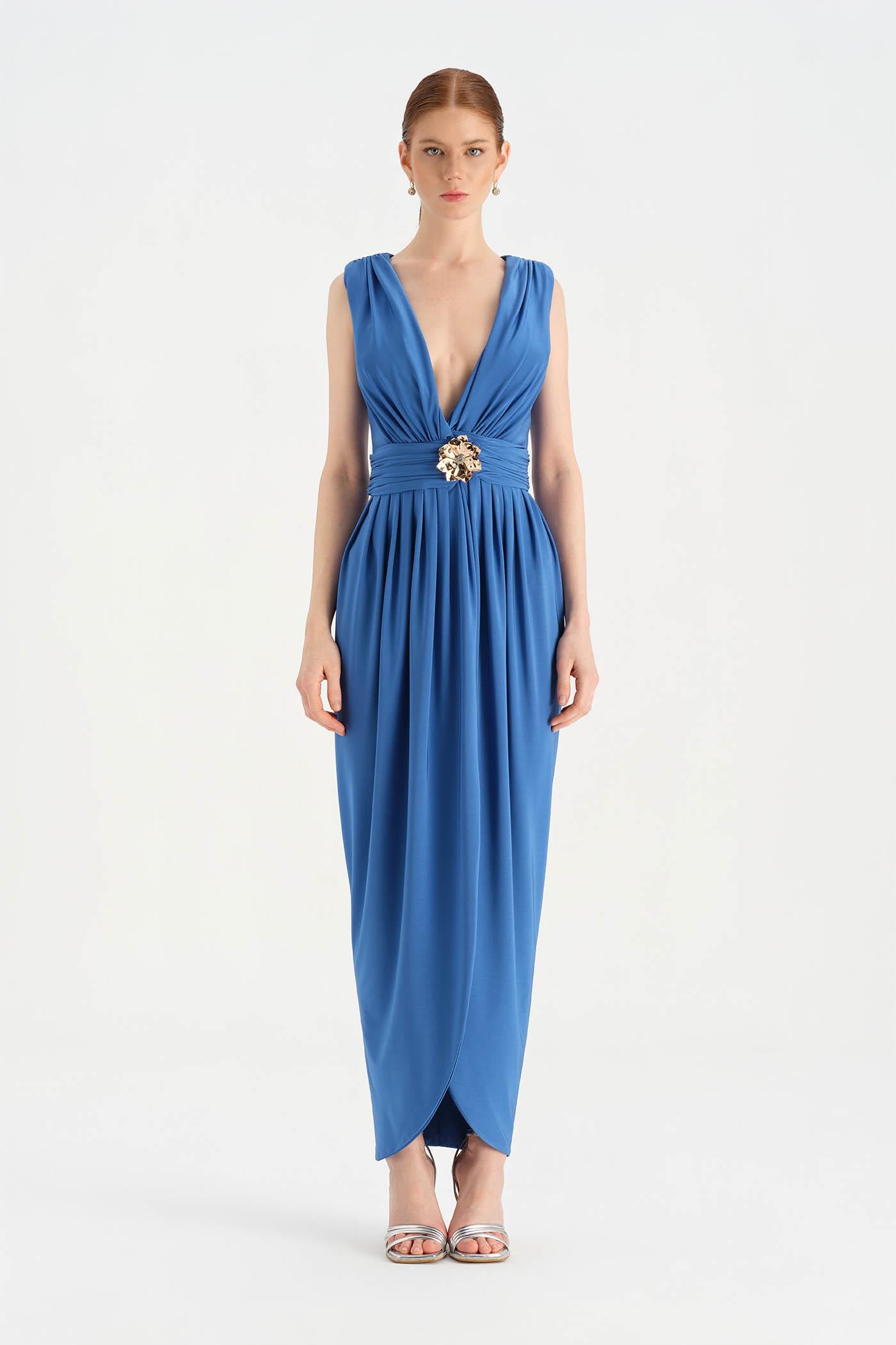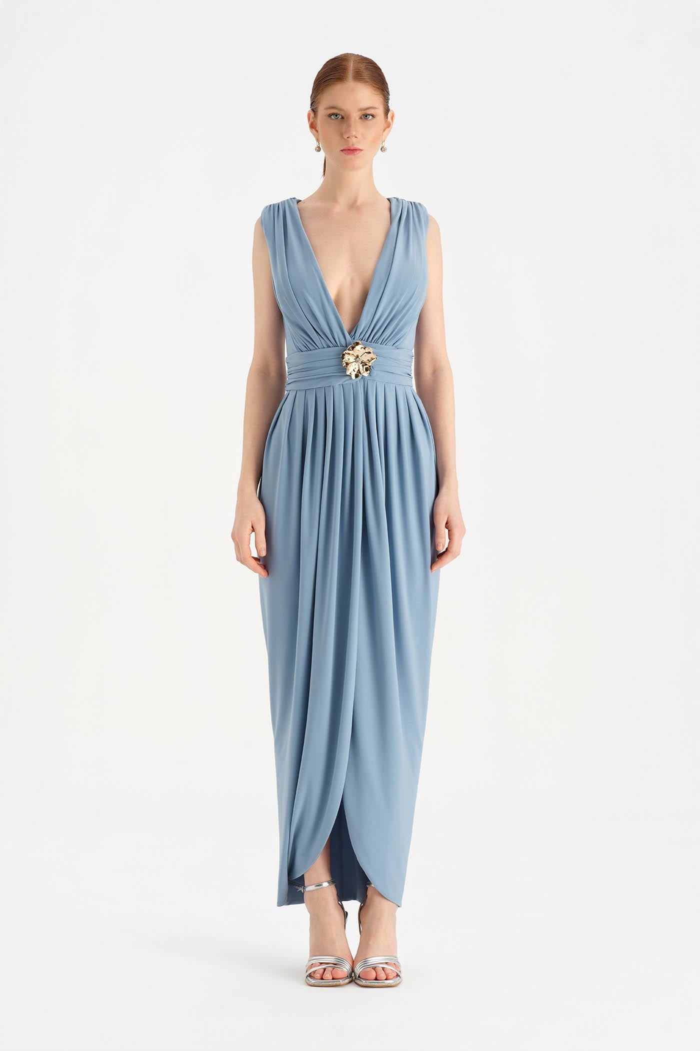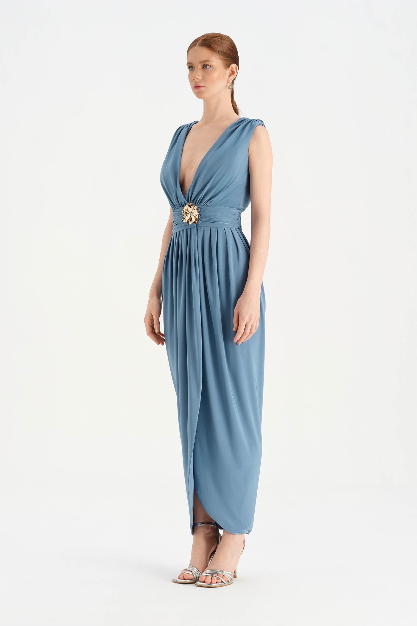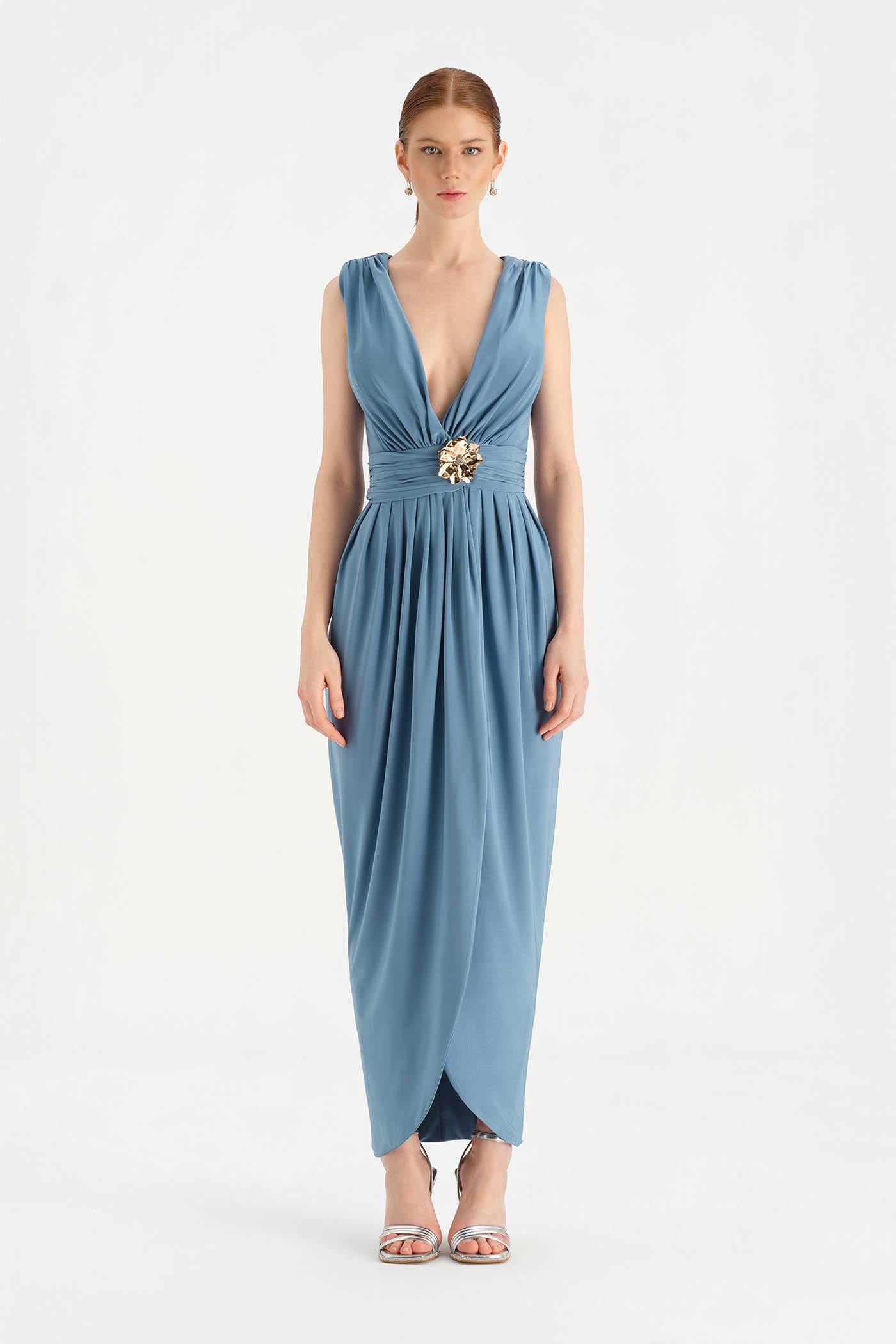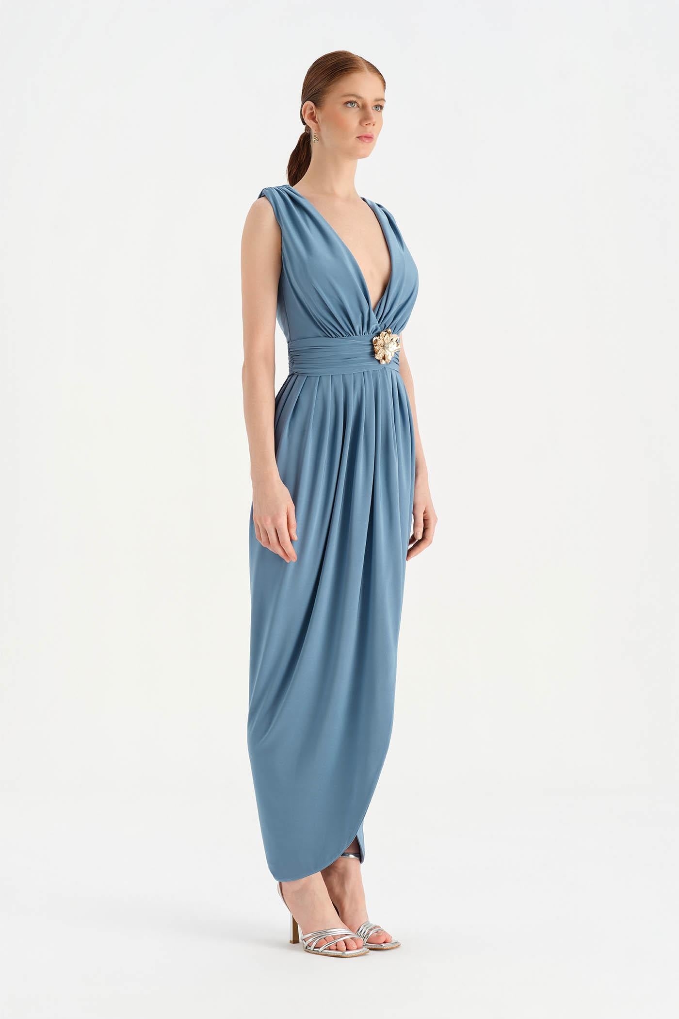 Anvelop Kesim Broş Detaylı Abiye Elbise - 26157C