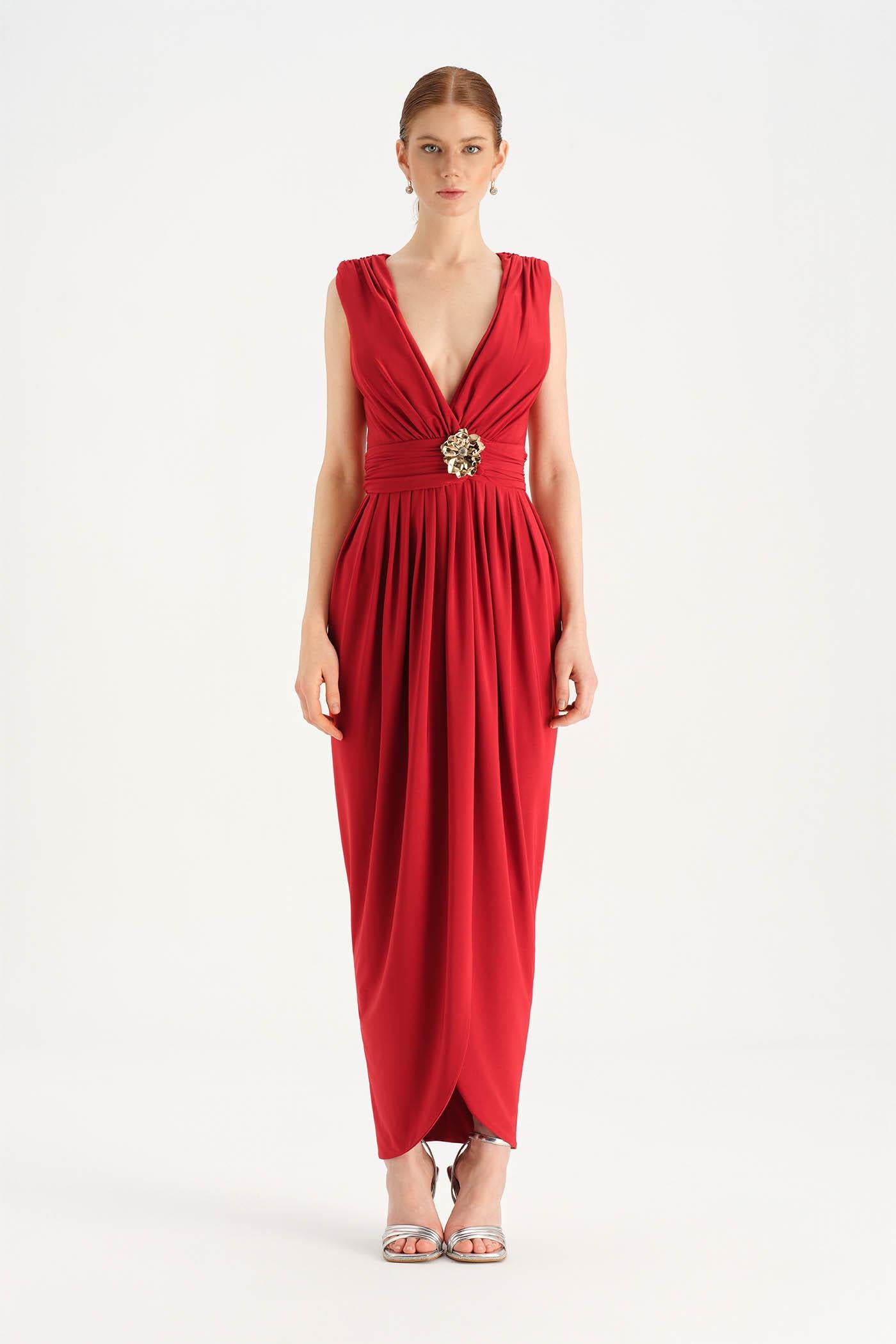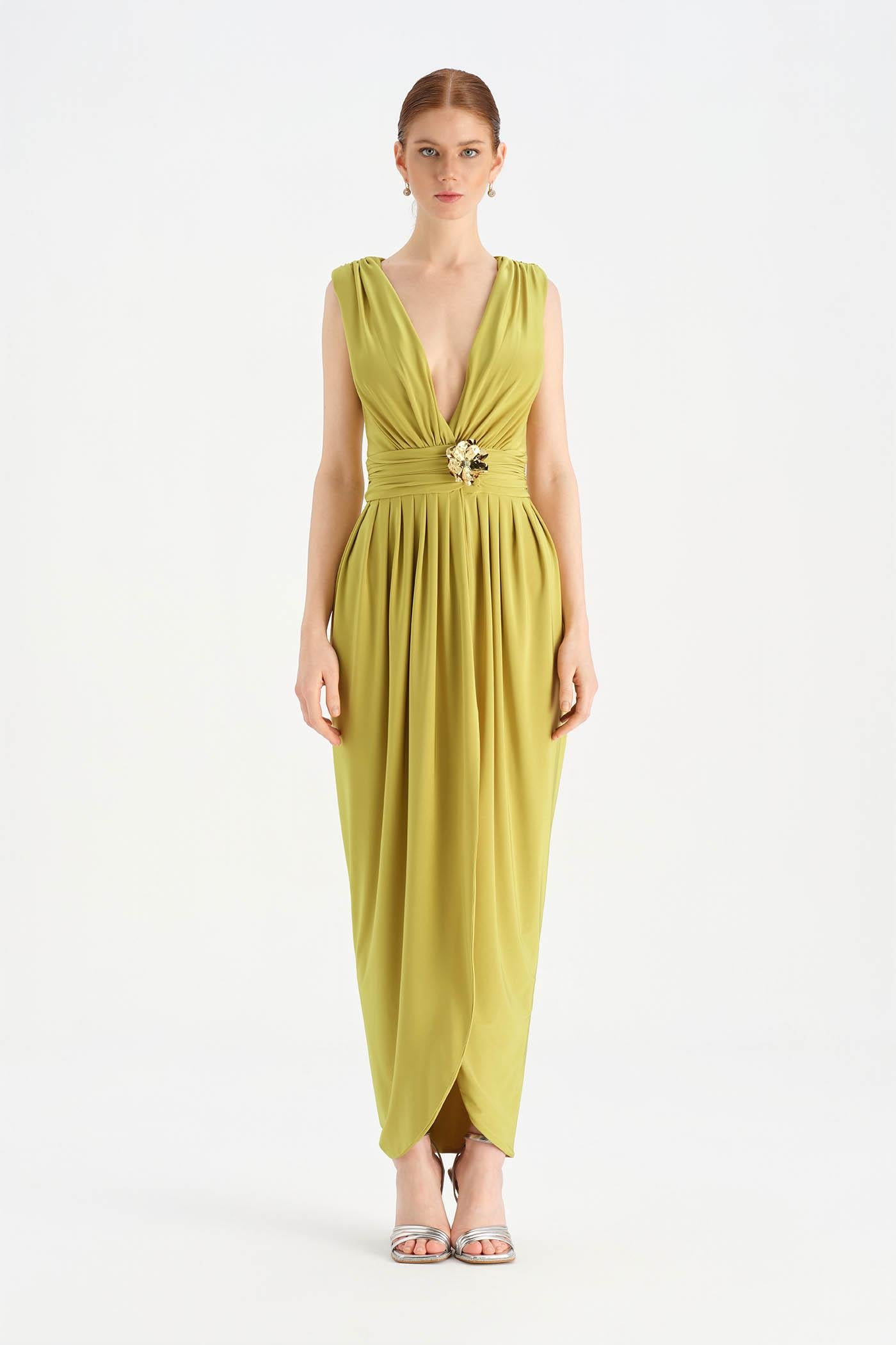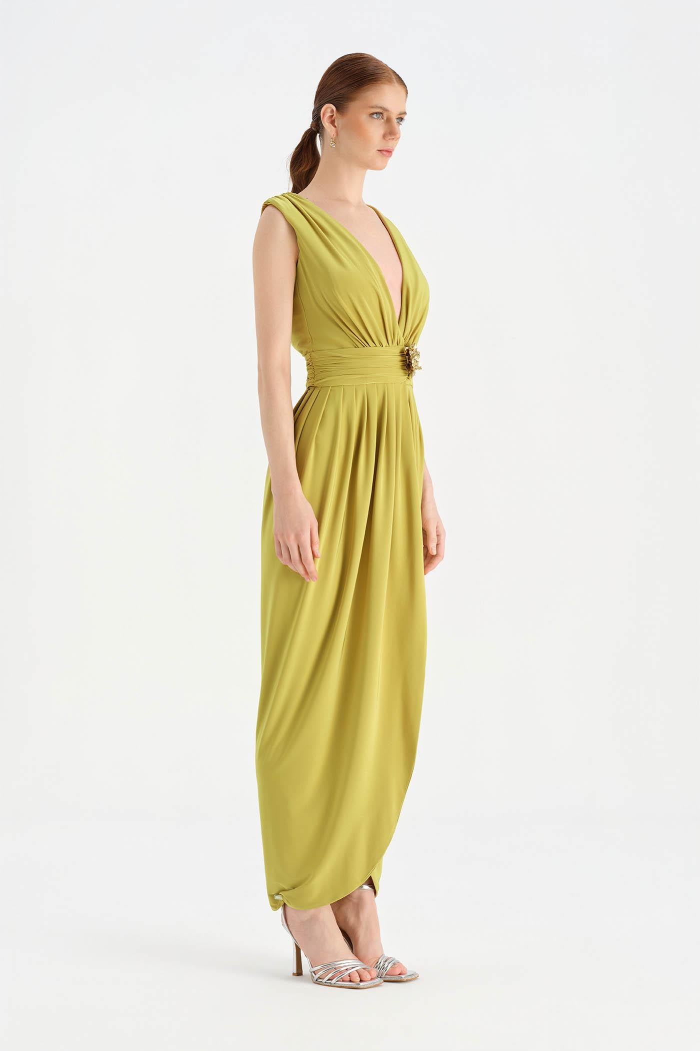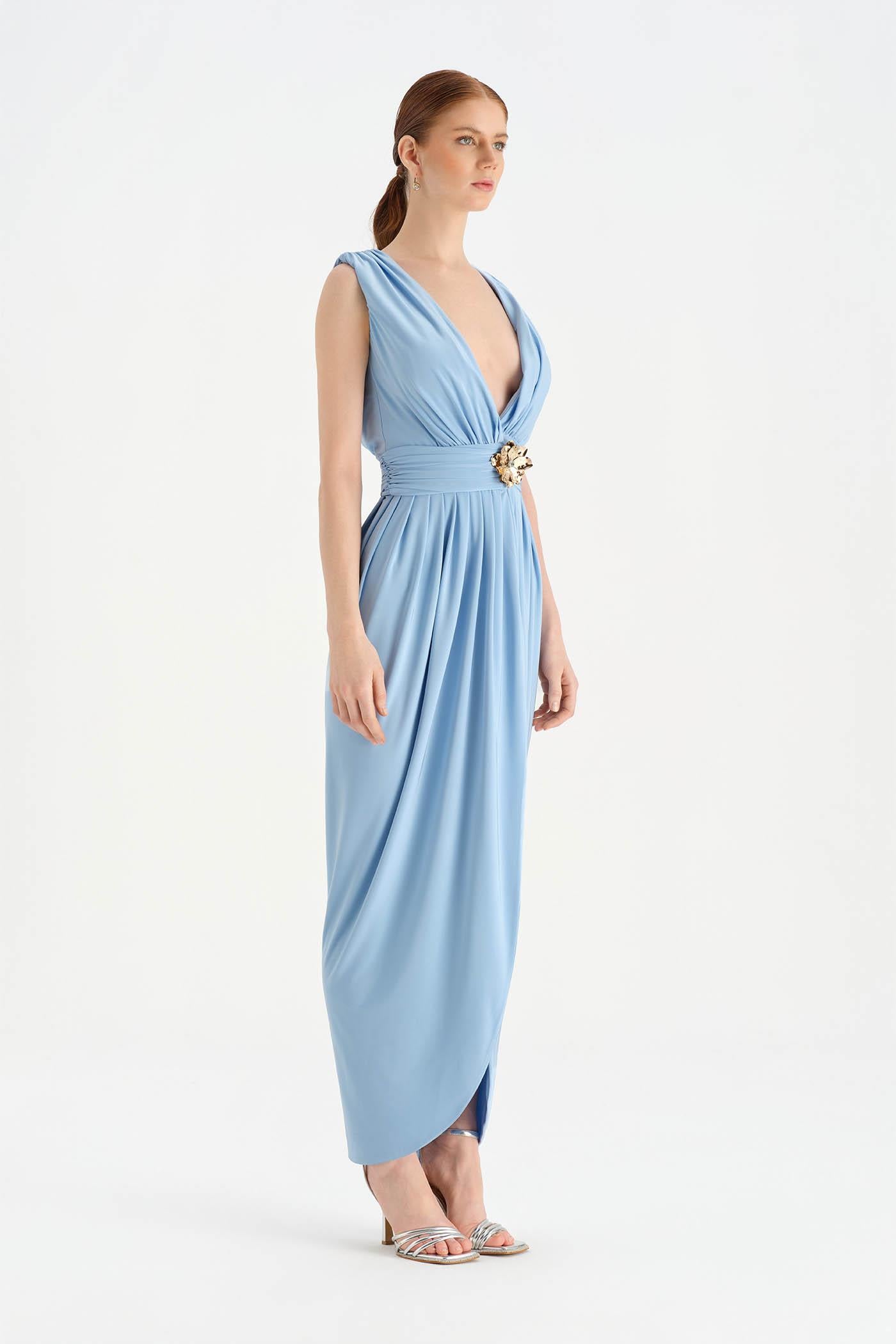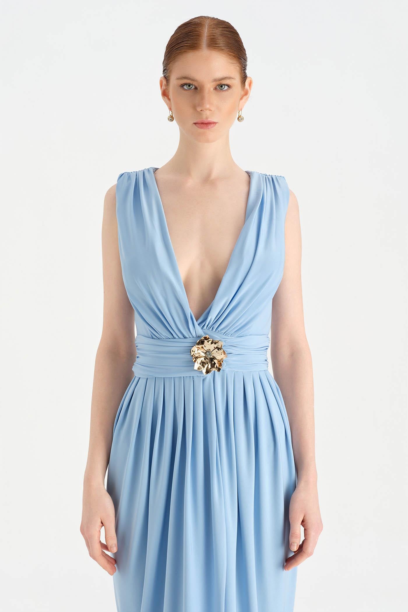 Anvelop Kesim Broş Detaylı Abiye Elbise - 26157C