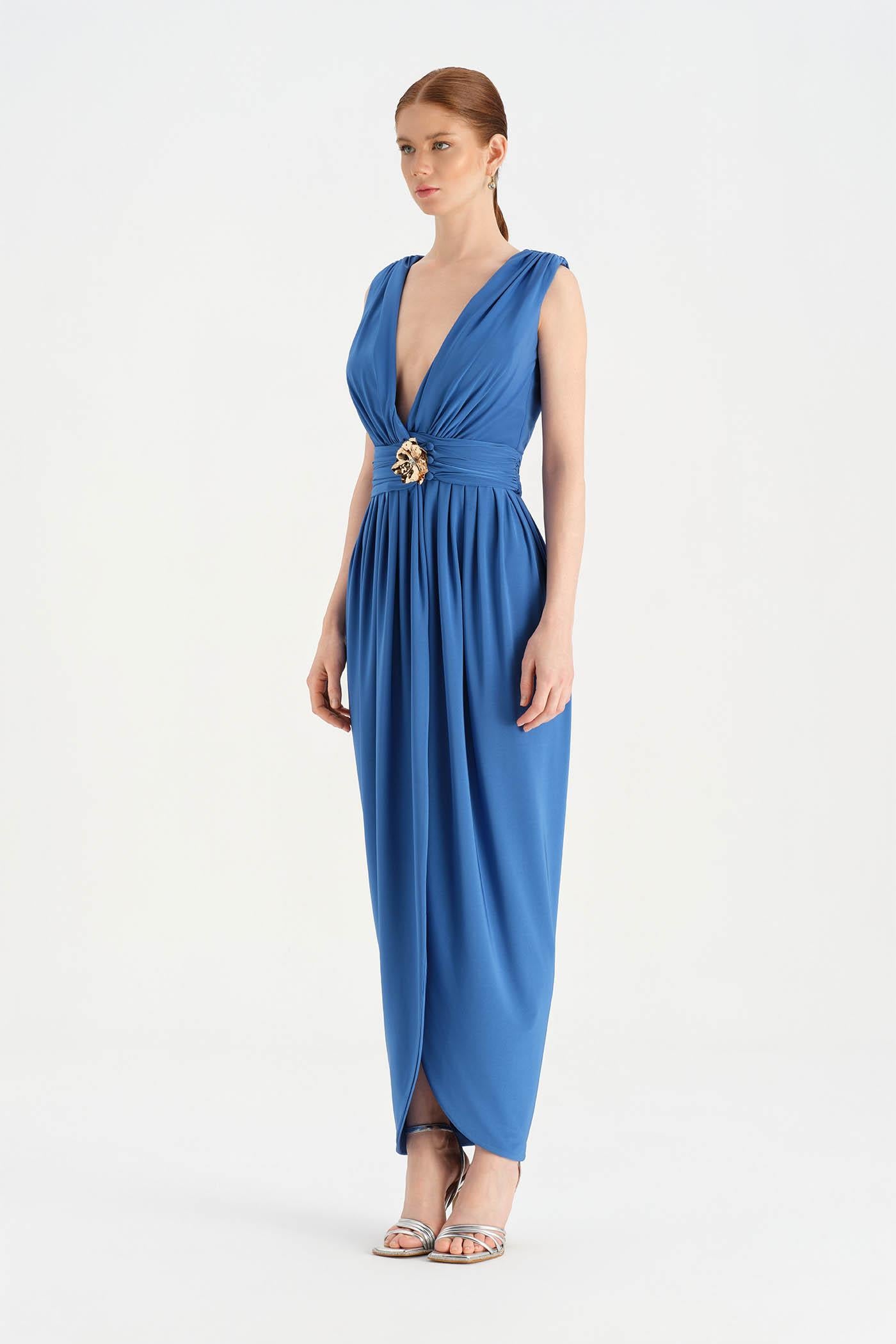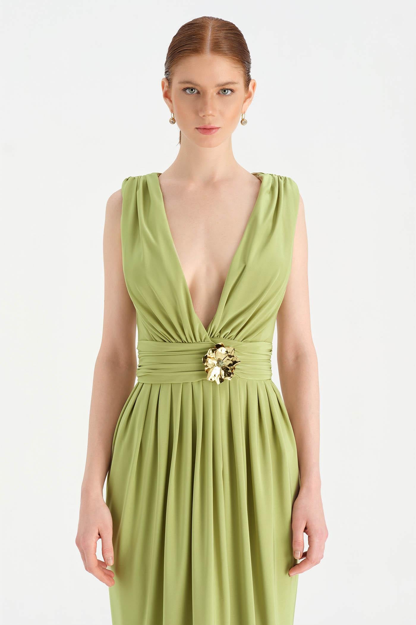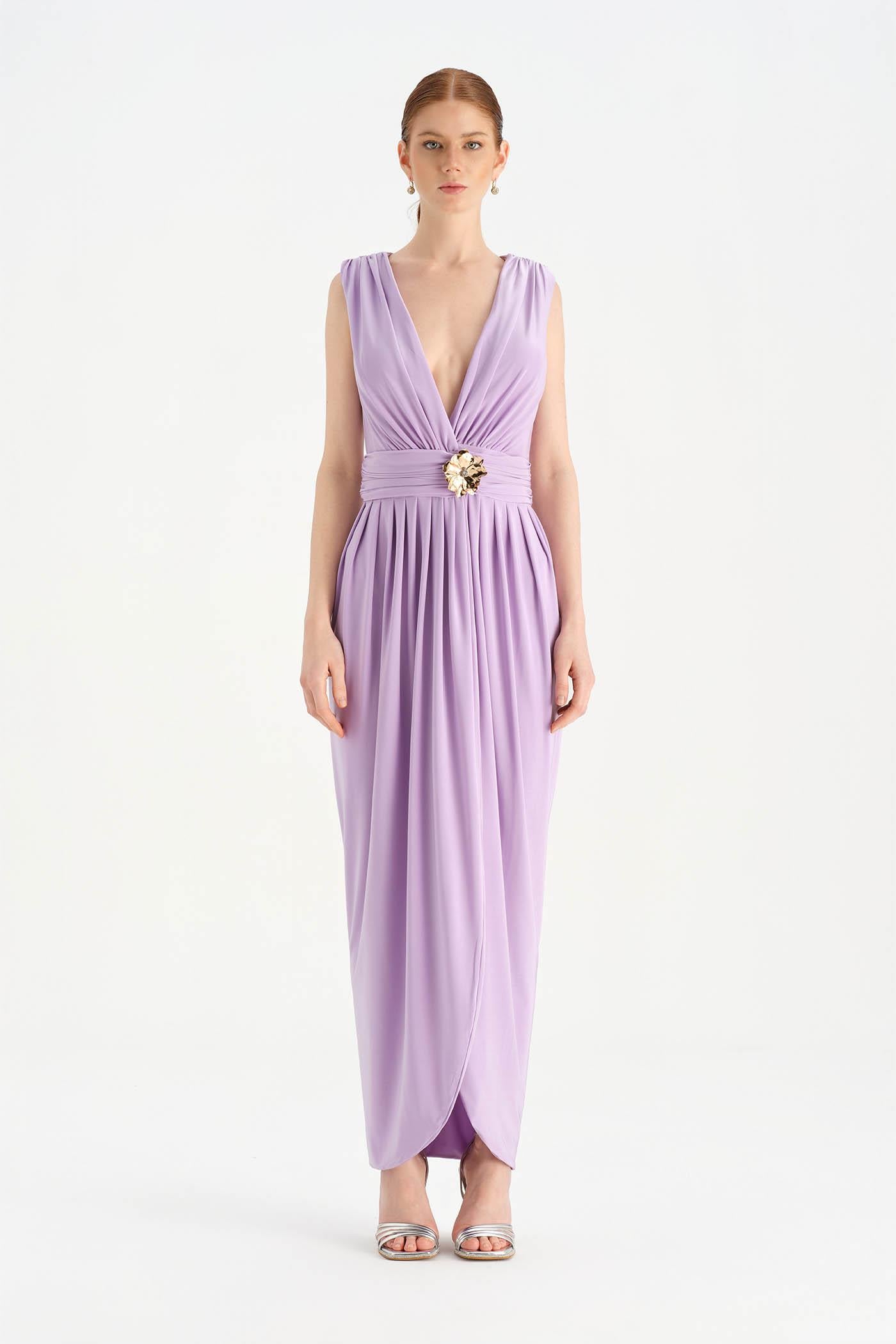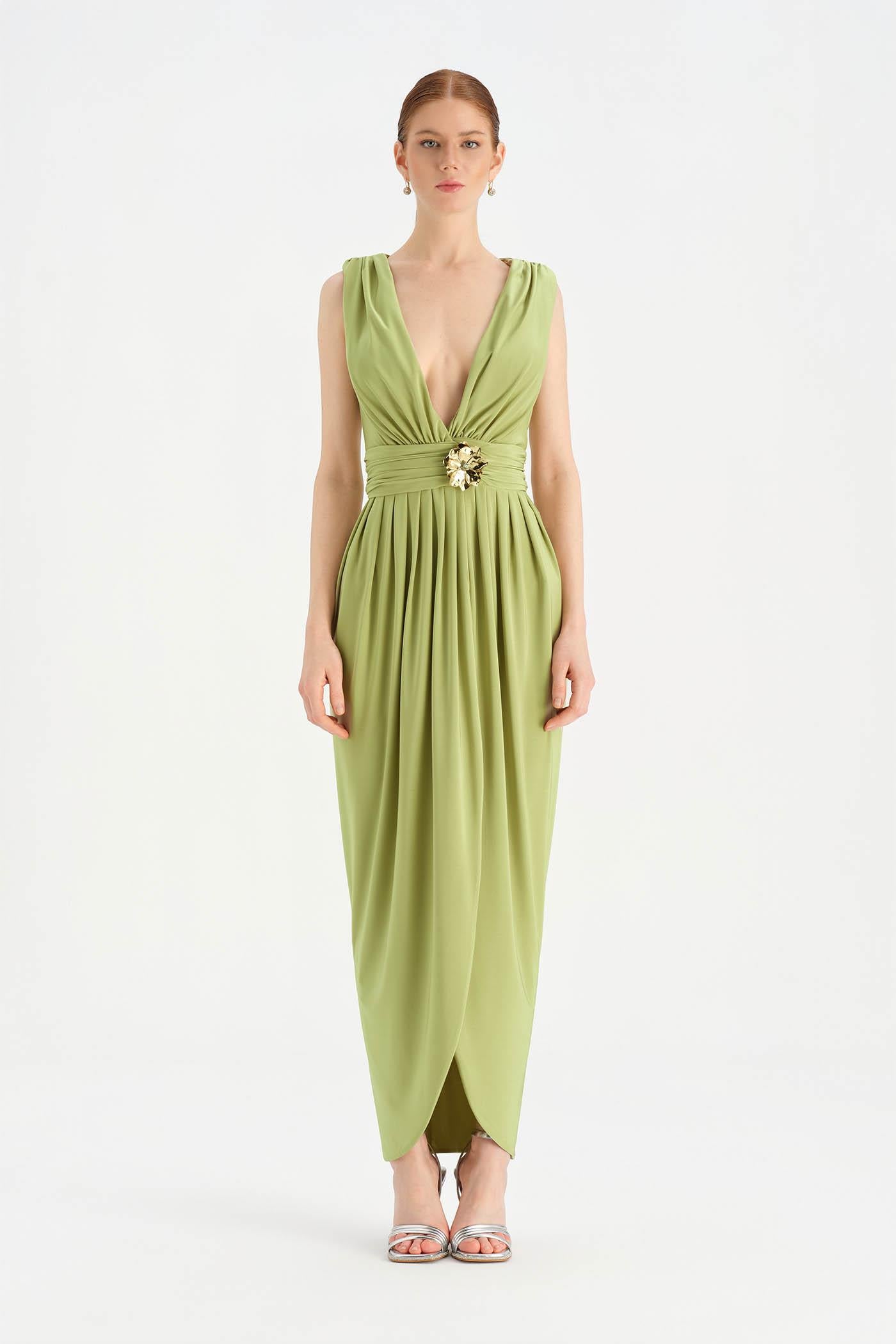 Anvelop Kesim Broş Detaylı Abiye Elbise - 26157C