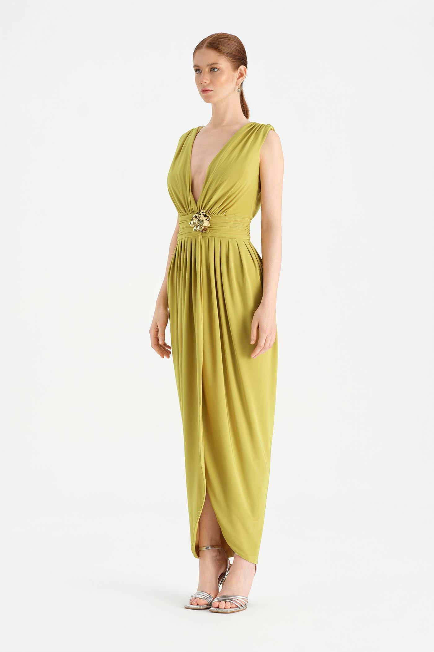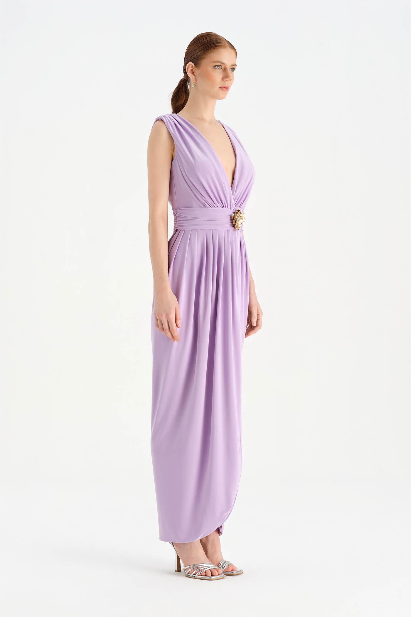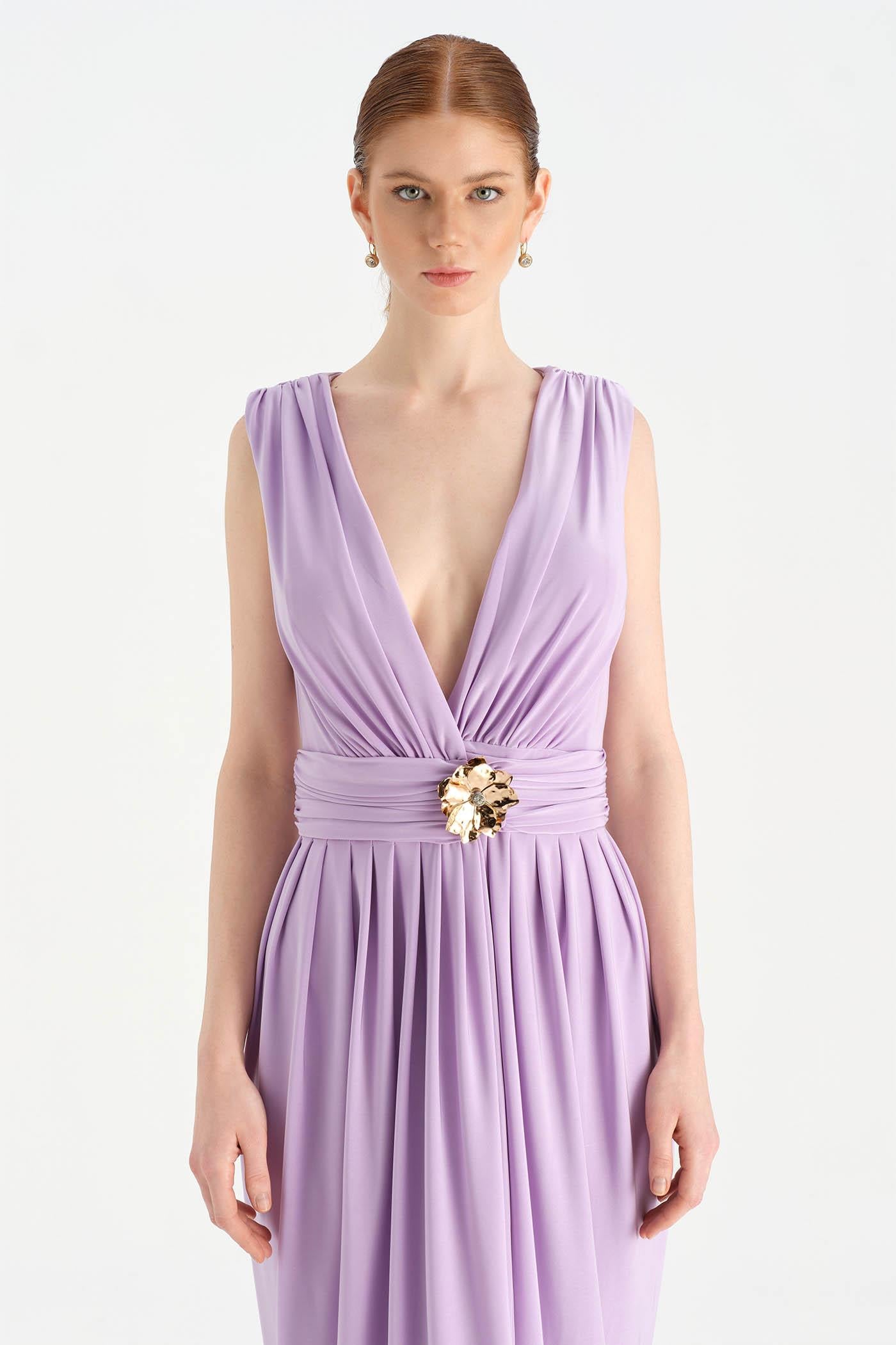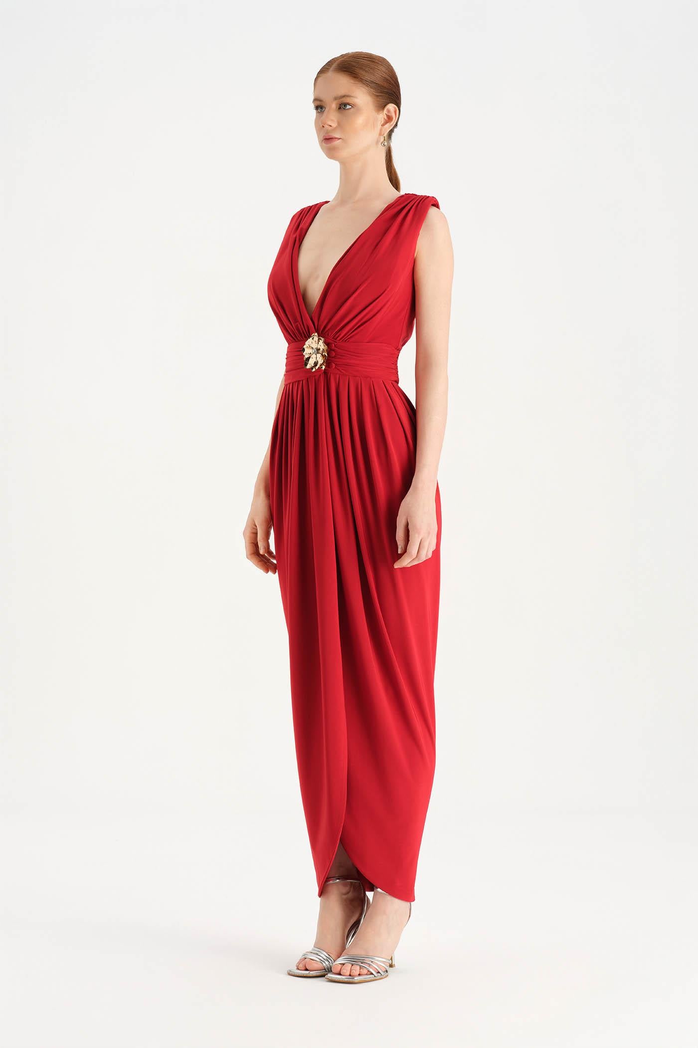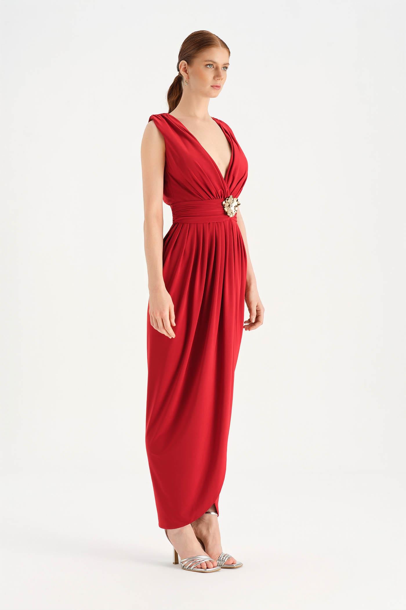 Anvelop Kesim Broş Detaylı Abiye Elbise - 26157C