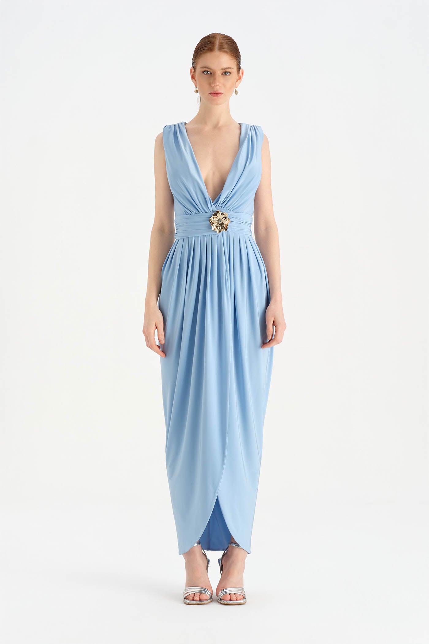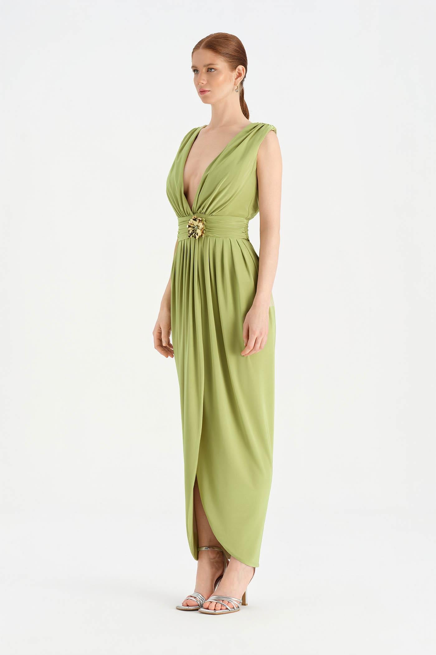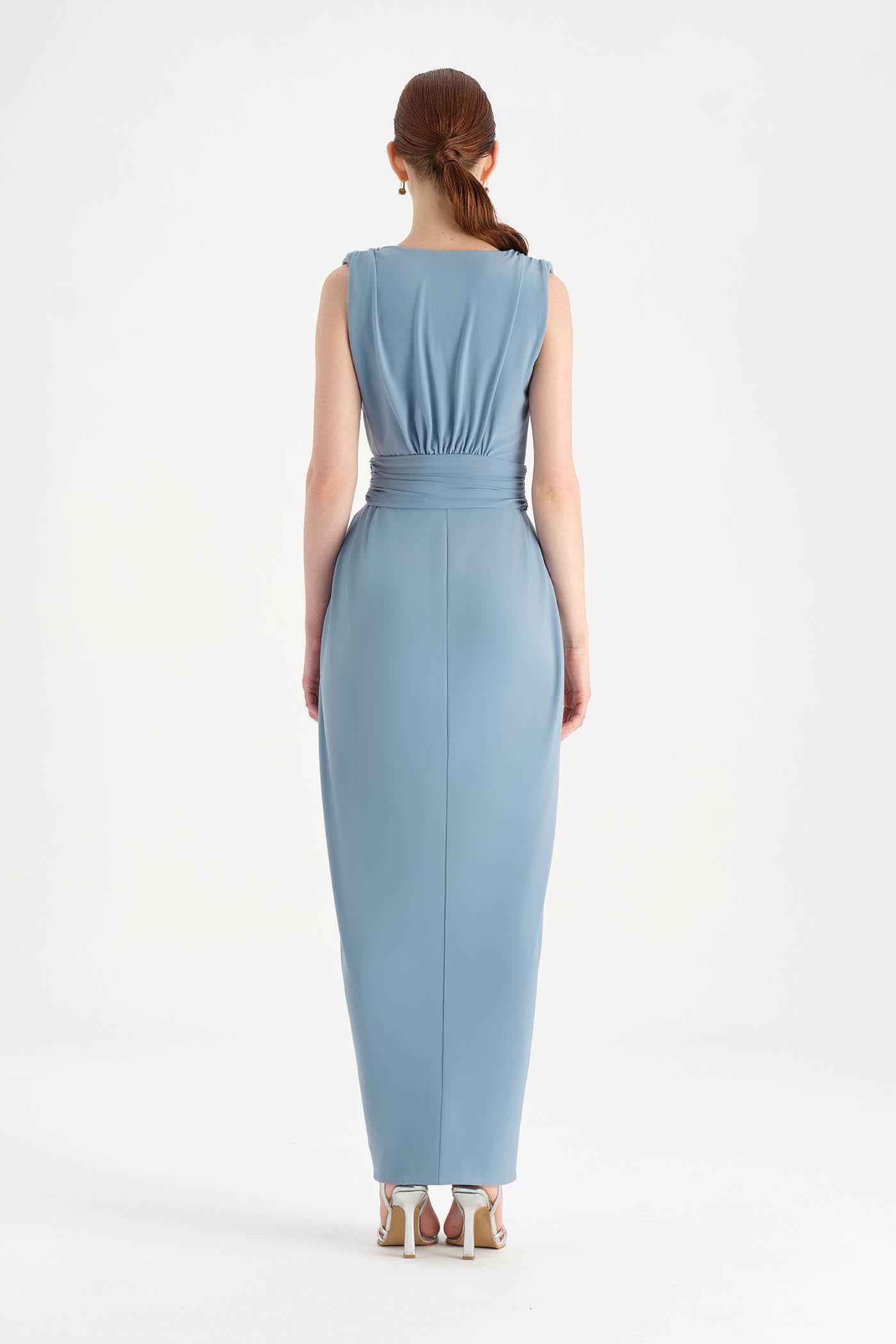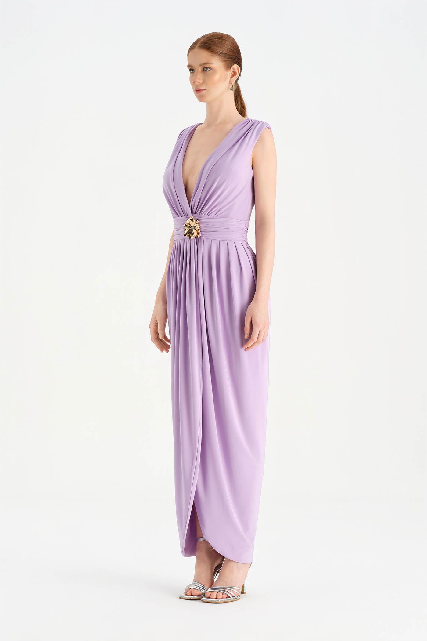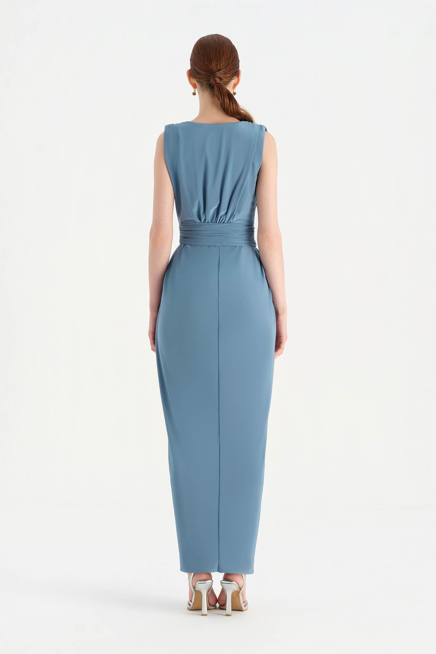 Anvelop Kesim Broş Detaylı Abiye Elbise - 26157C