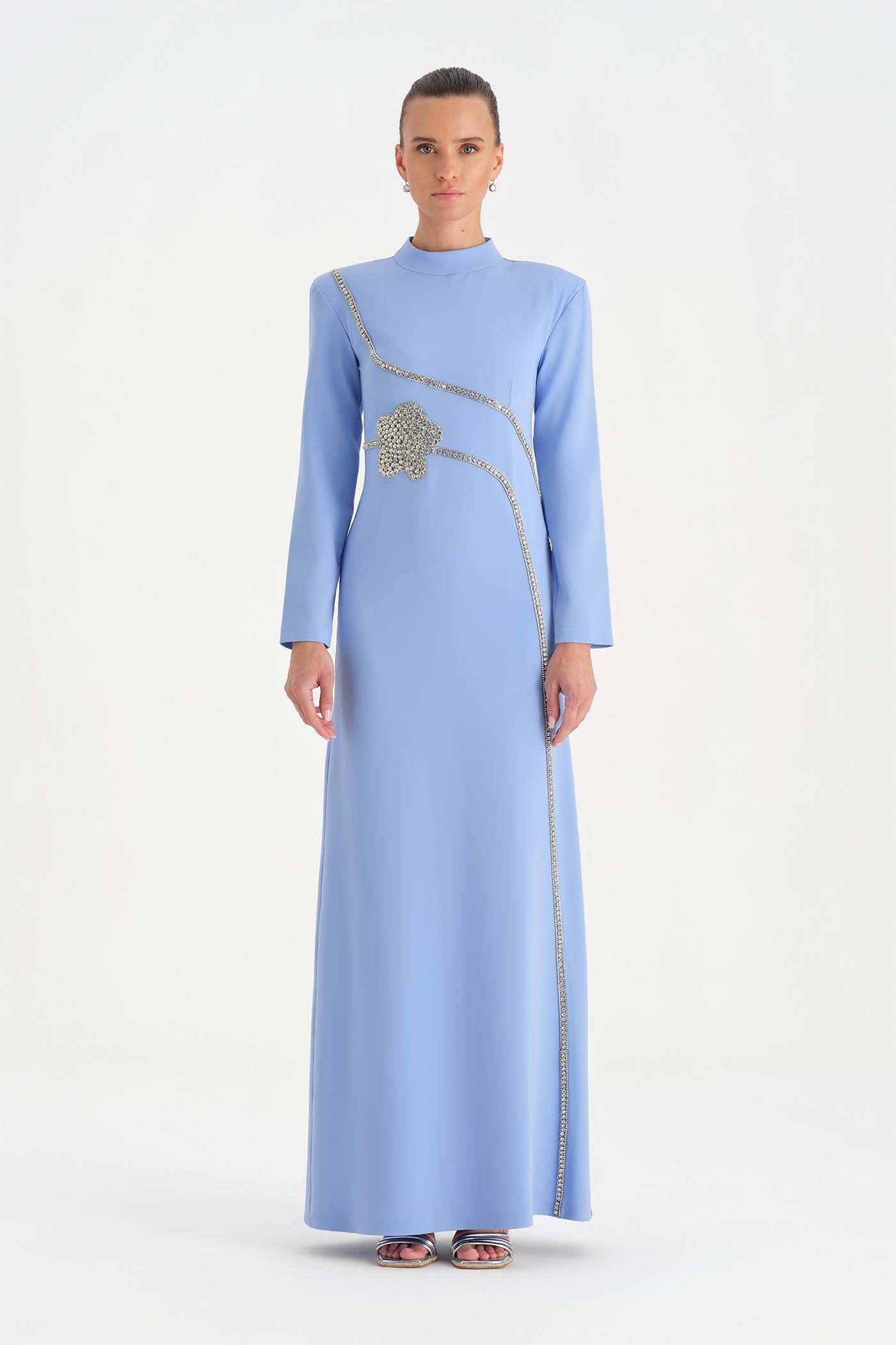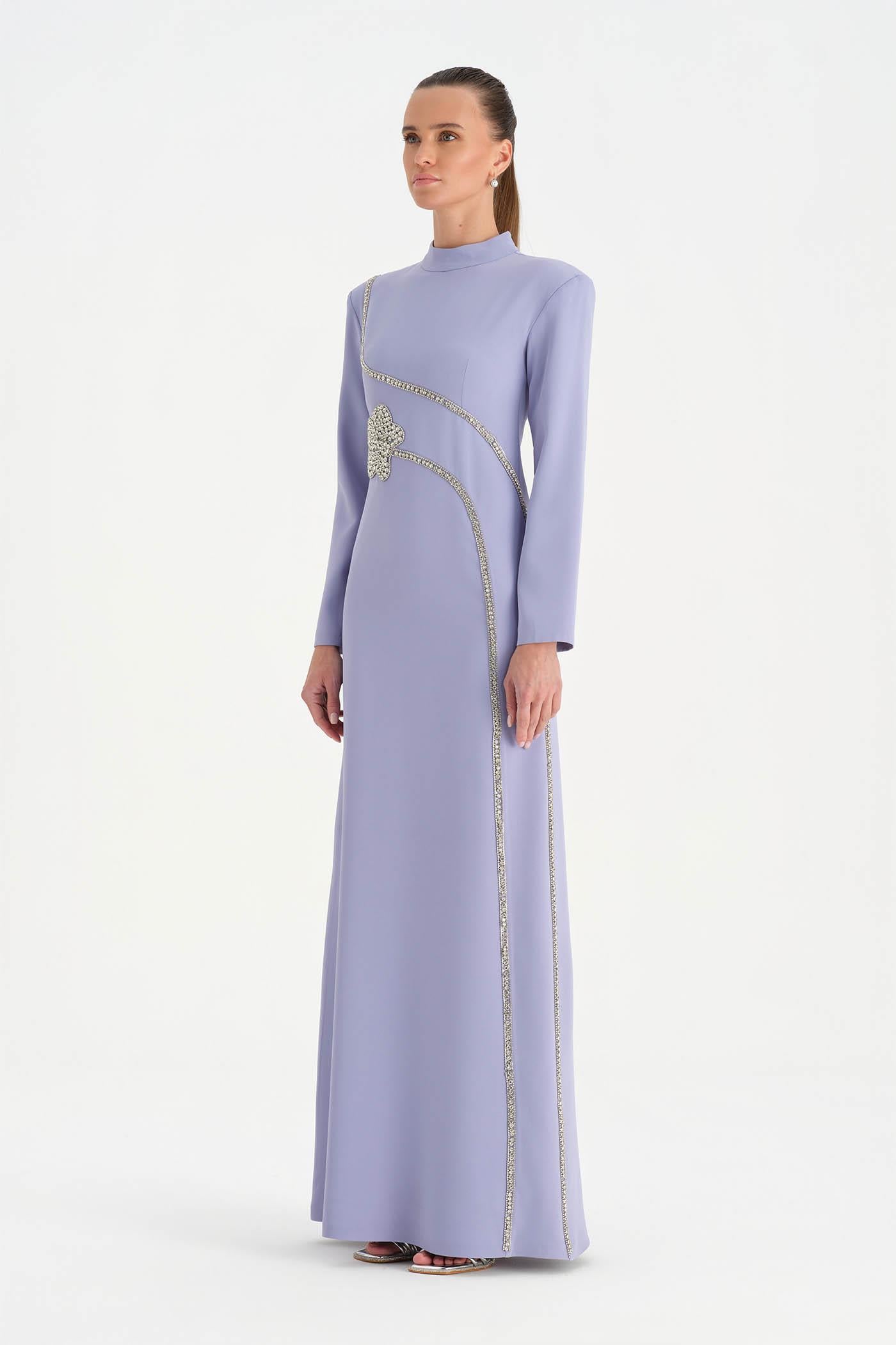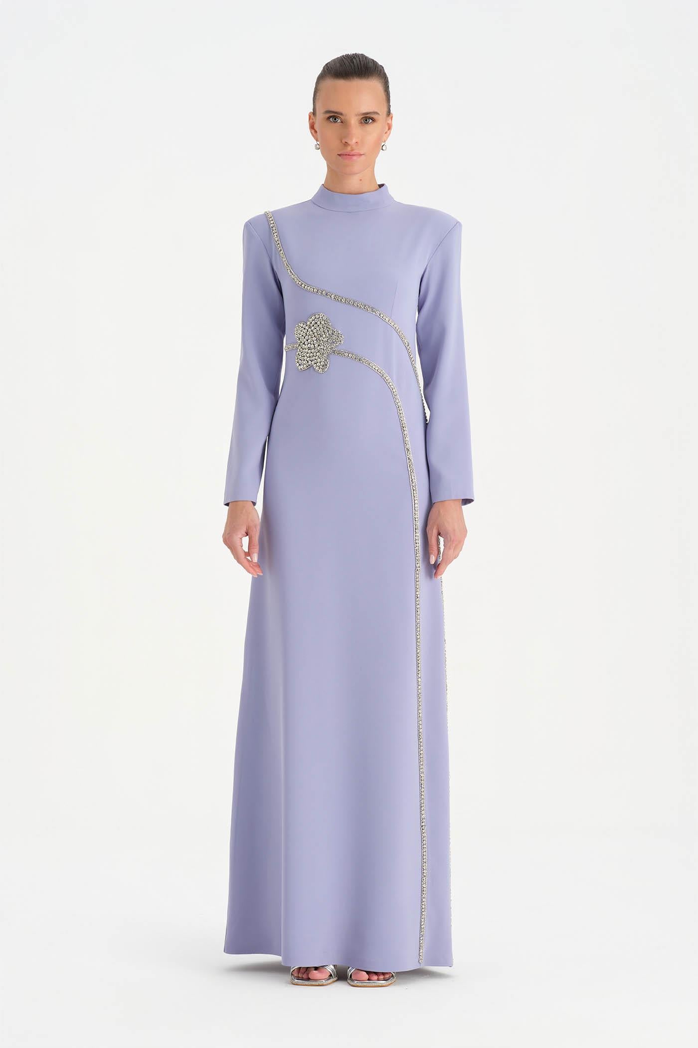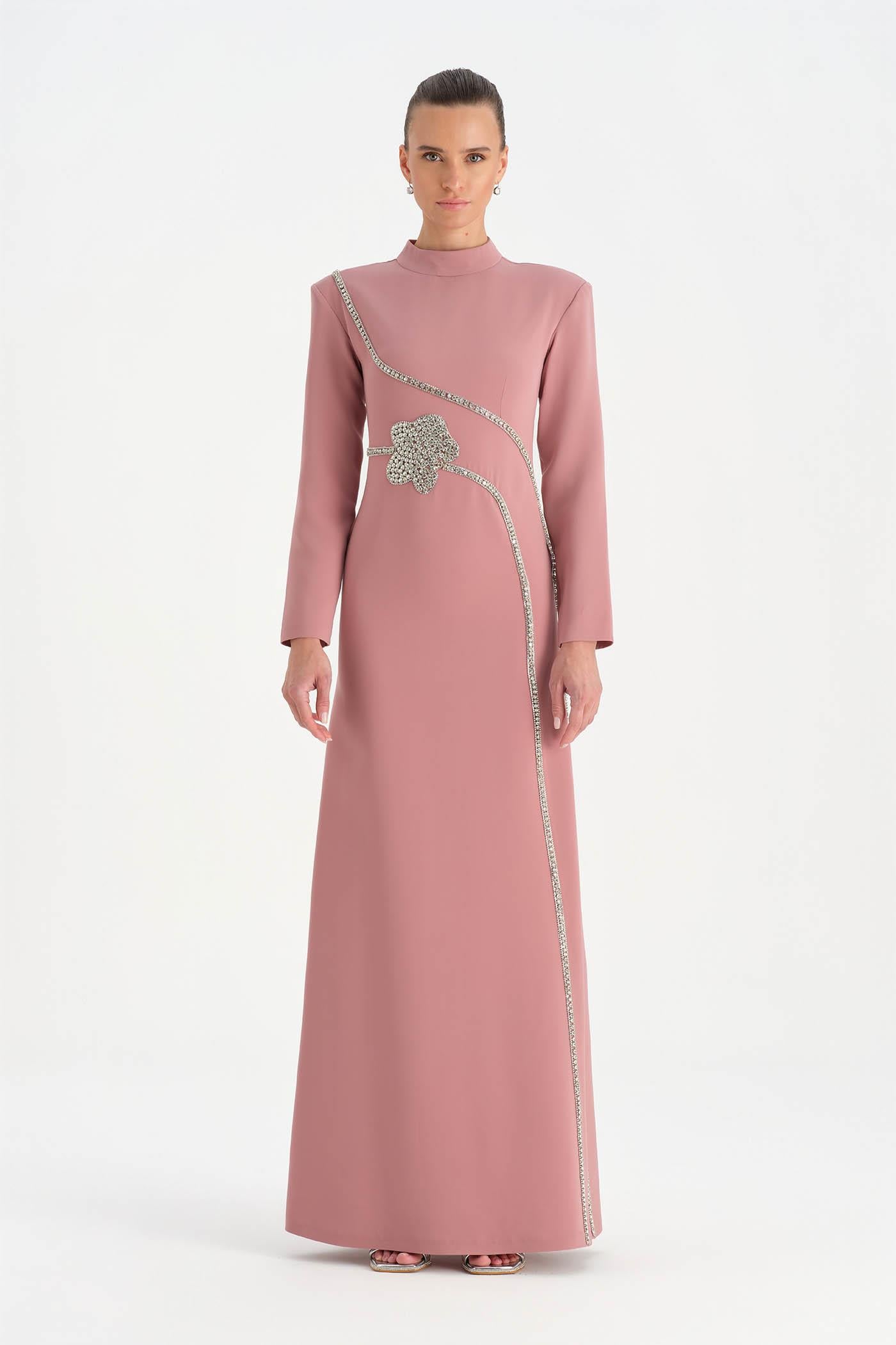 Taş İşlemeli Tesettür Abiye Elbise - 26186C