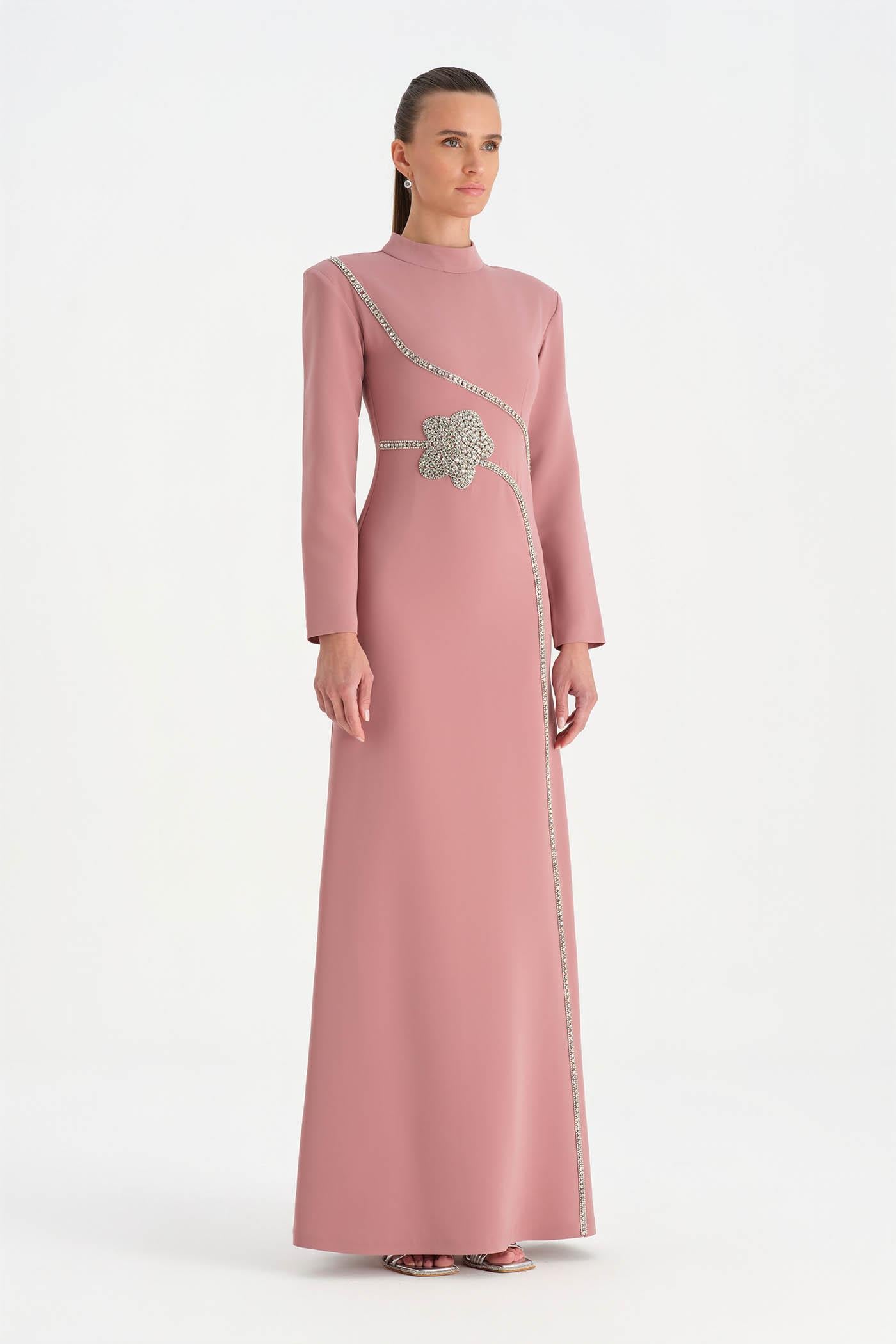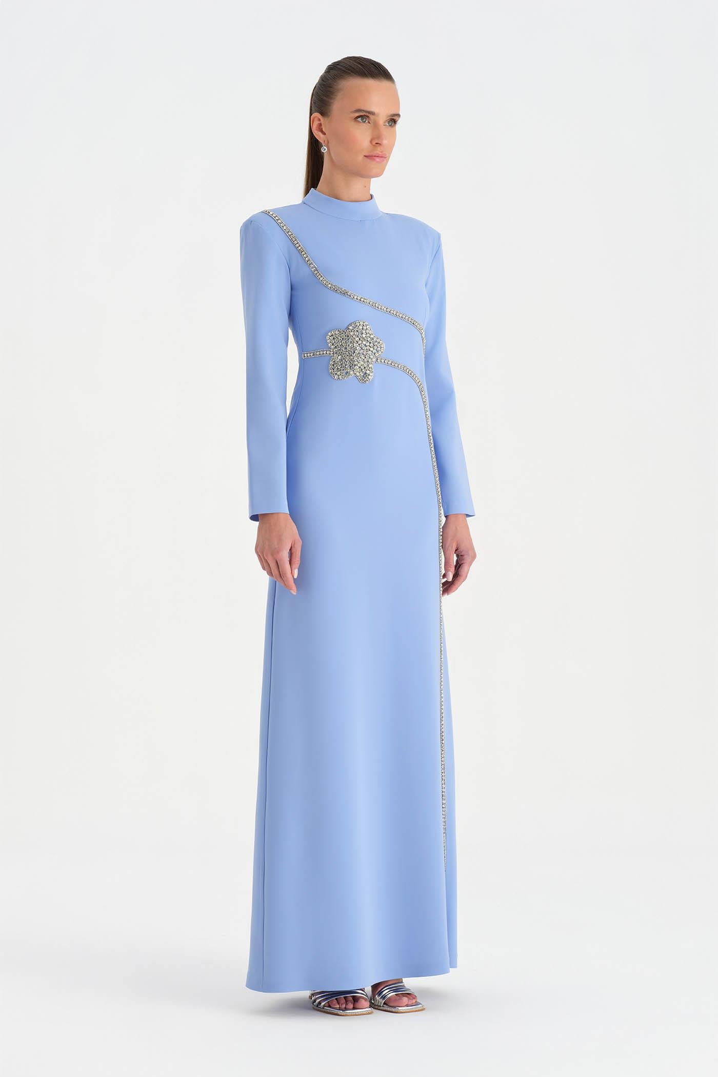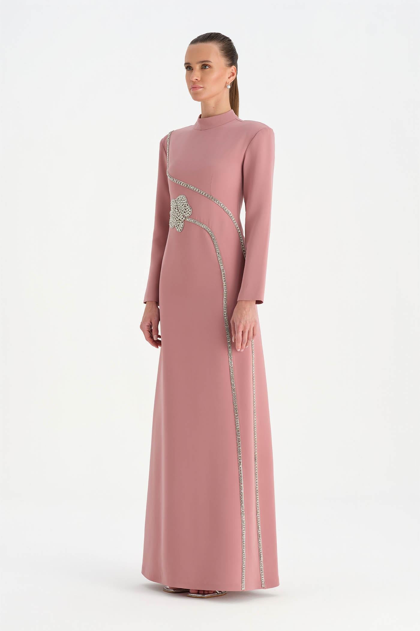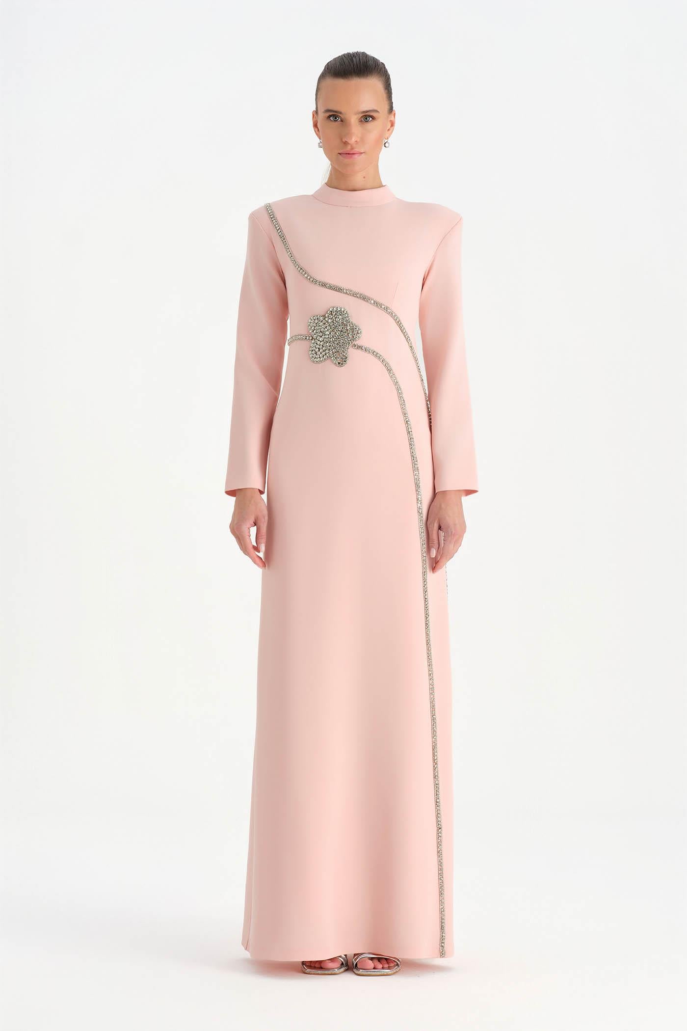 Taş İşlemeli Tesettür Abiye Elbise - 26186C