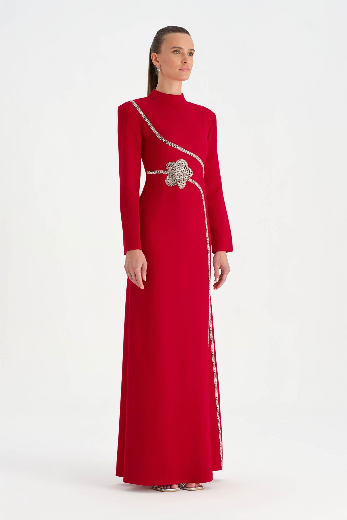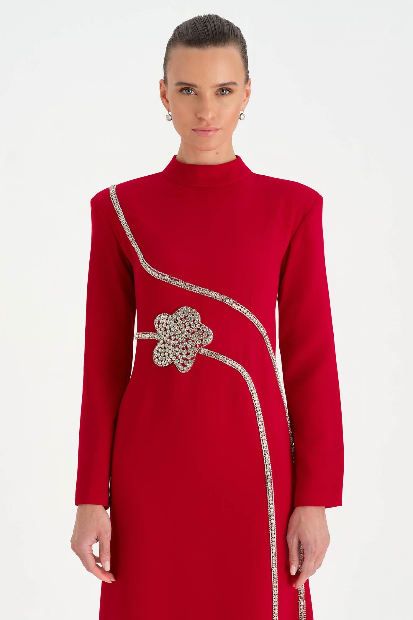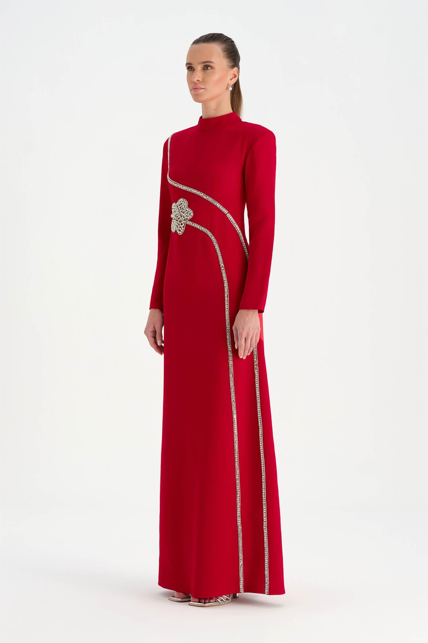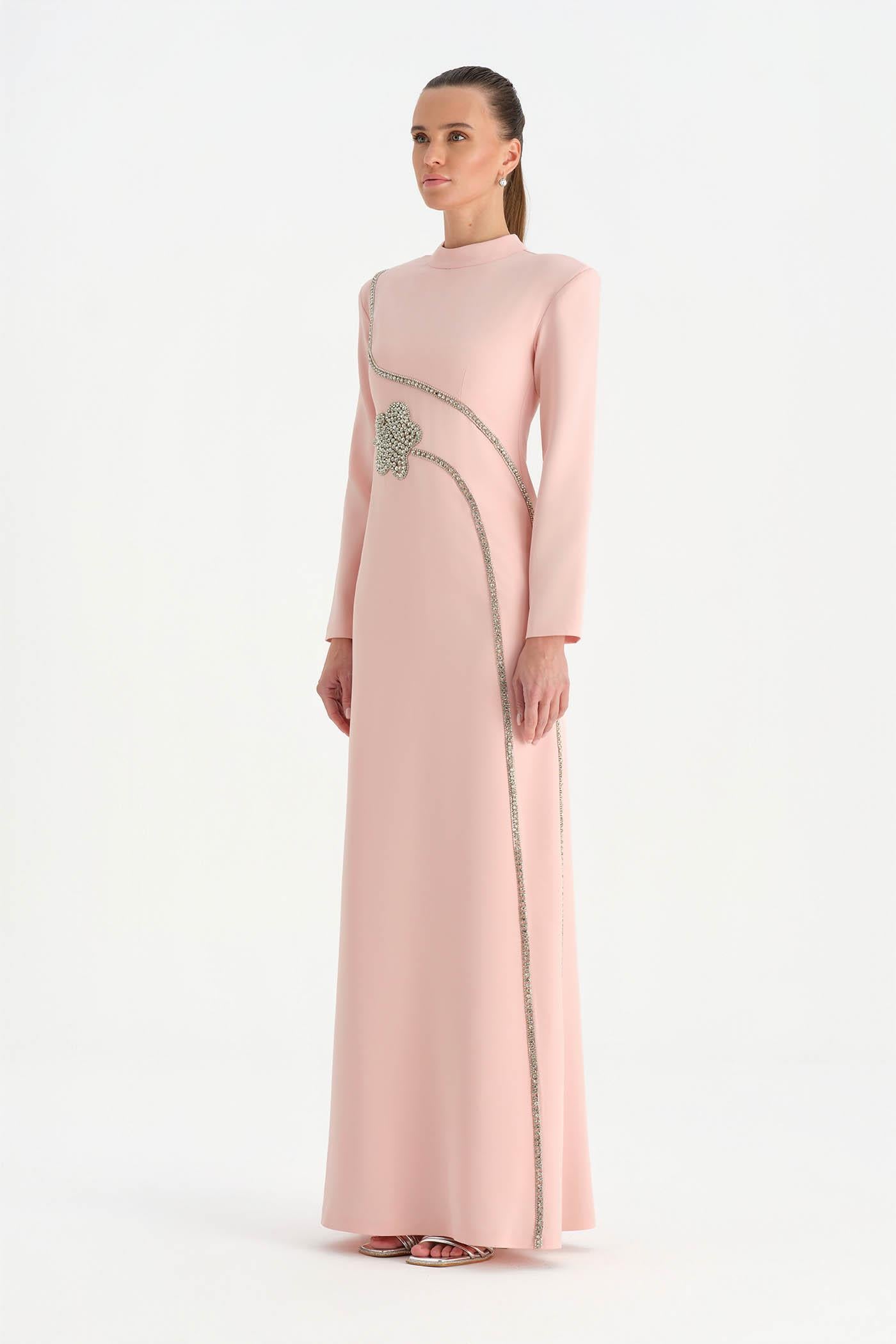 Taş İşlemeli Tesettür Abiye Elbise - 26186C