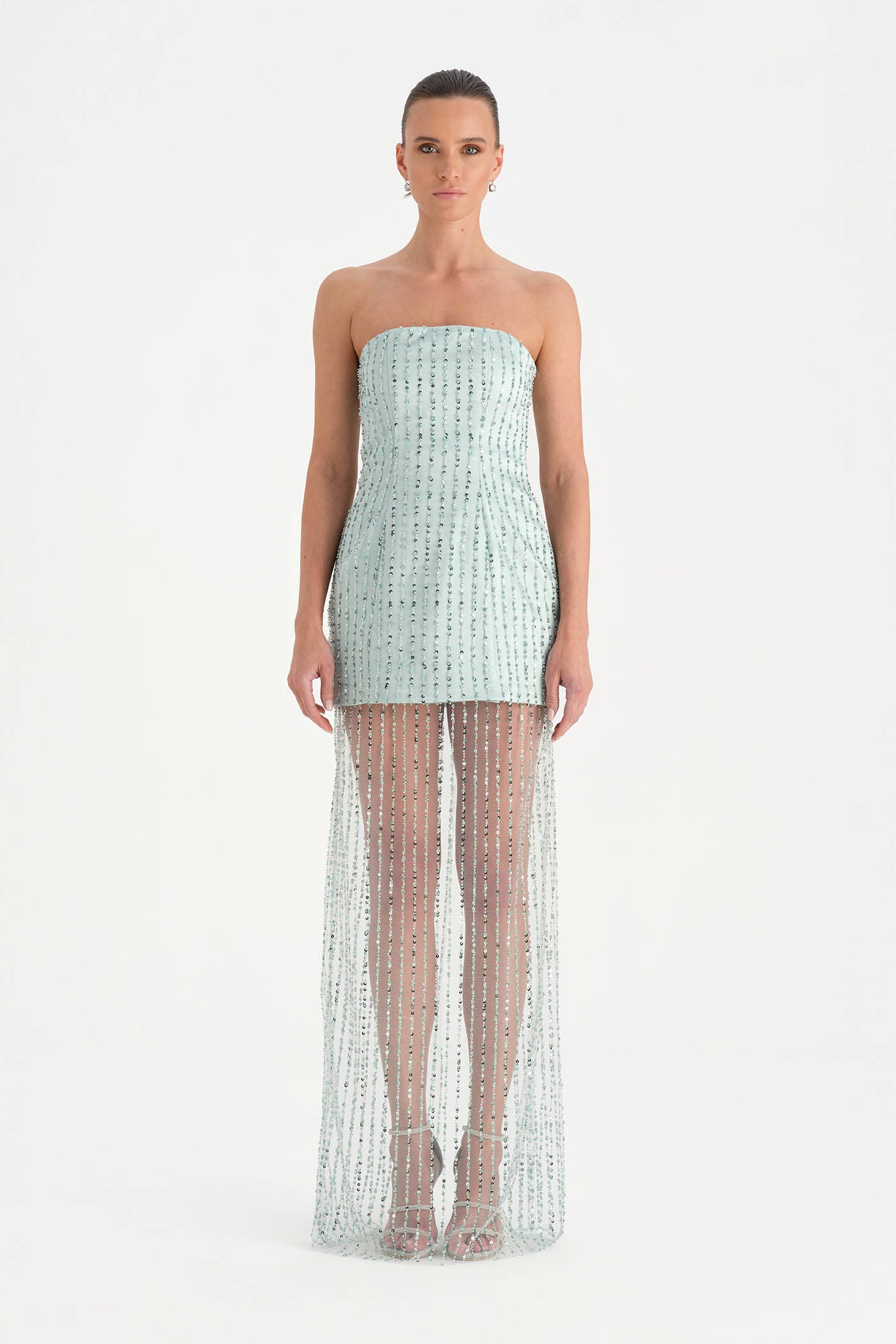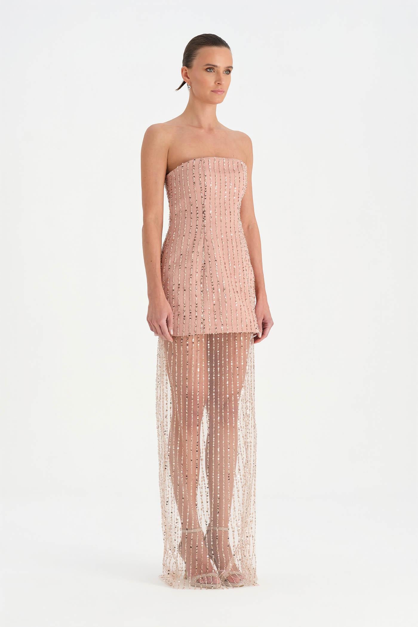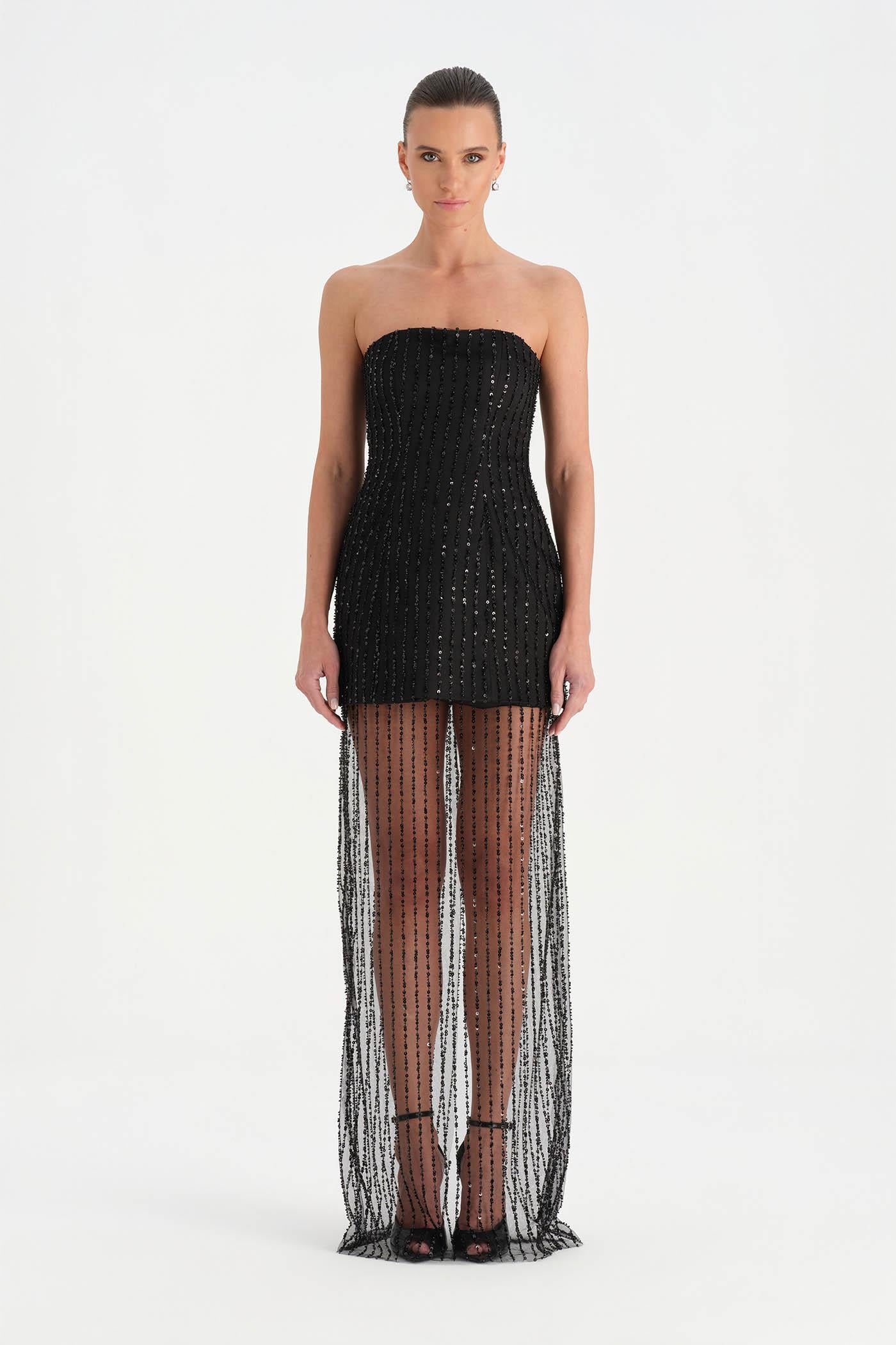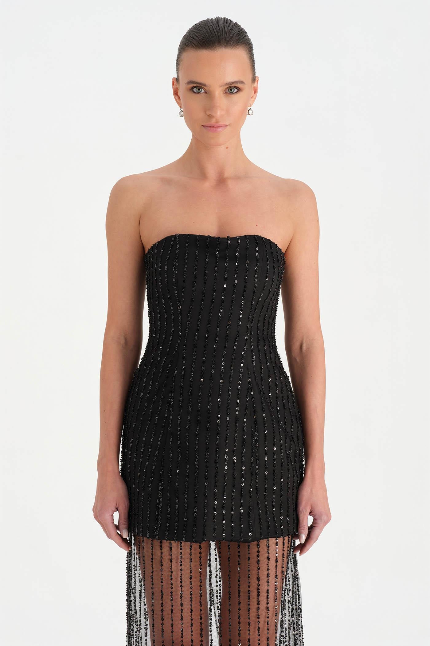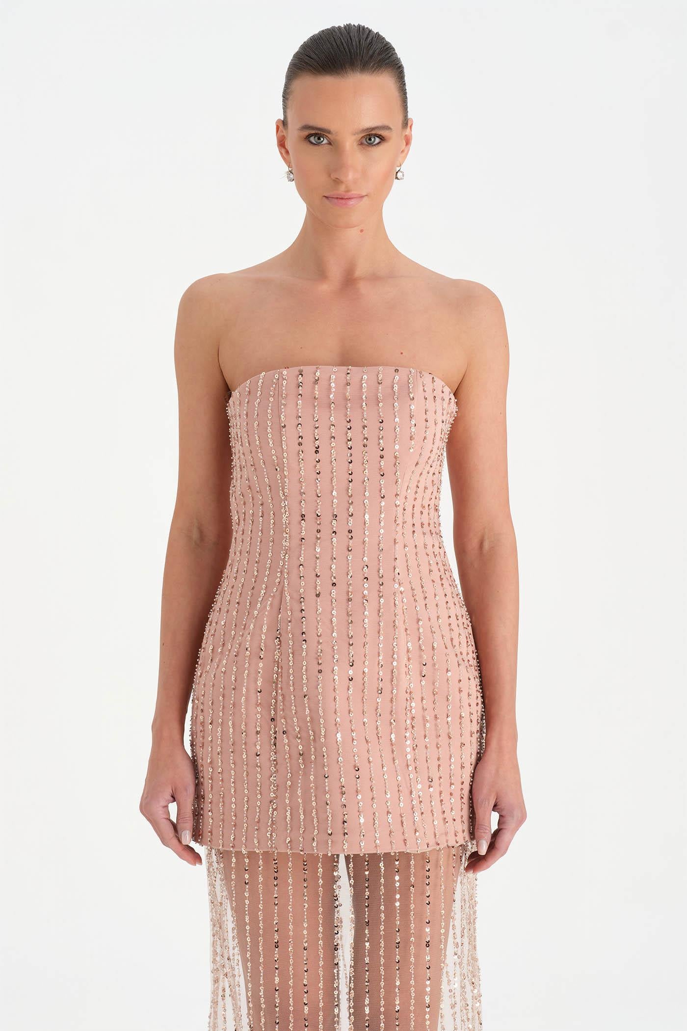 Straplez Taşlı Tül Abiye Elbise – 26053C , Modern ve iddialı tasarımıyla dikkat çeken bu abiye elbise, straplez kesimi ve taş işlemeli tül dokusuyla zarif bir siluet sunar. Vücuda uyum sağlayan üst form sade ve güçlü bir görünüm oluştururken, transparan tül etek tasarıma hafif ve etkileyici bir hareket kazandırır. Işıltılı detayları ve özgün kesimiyle özel davetler ve gece organizasyonları için dikkat çekici bir stil sunar.