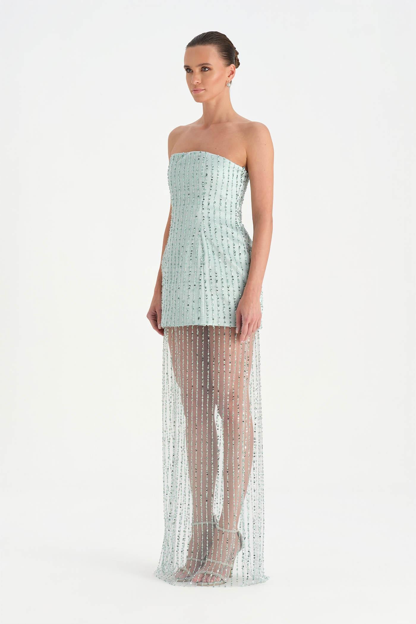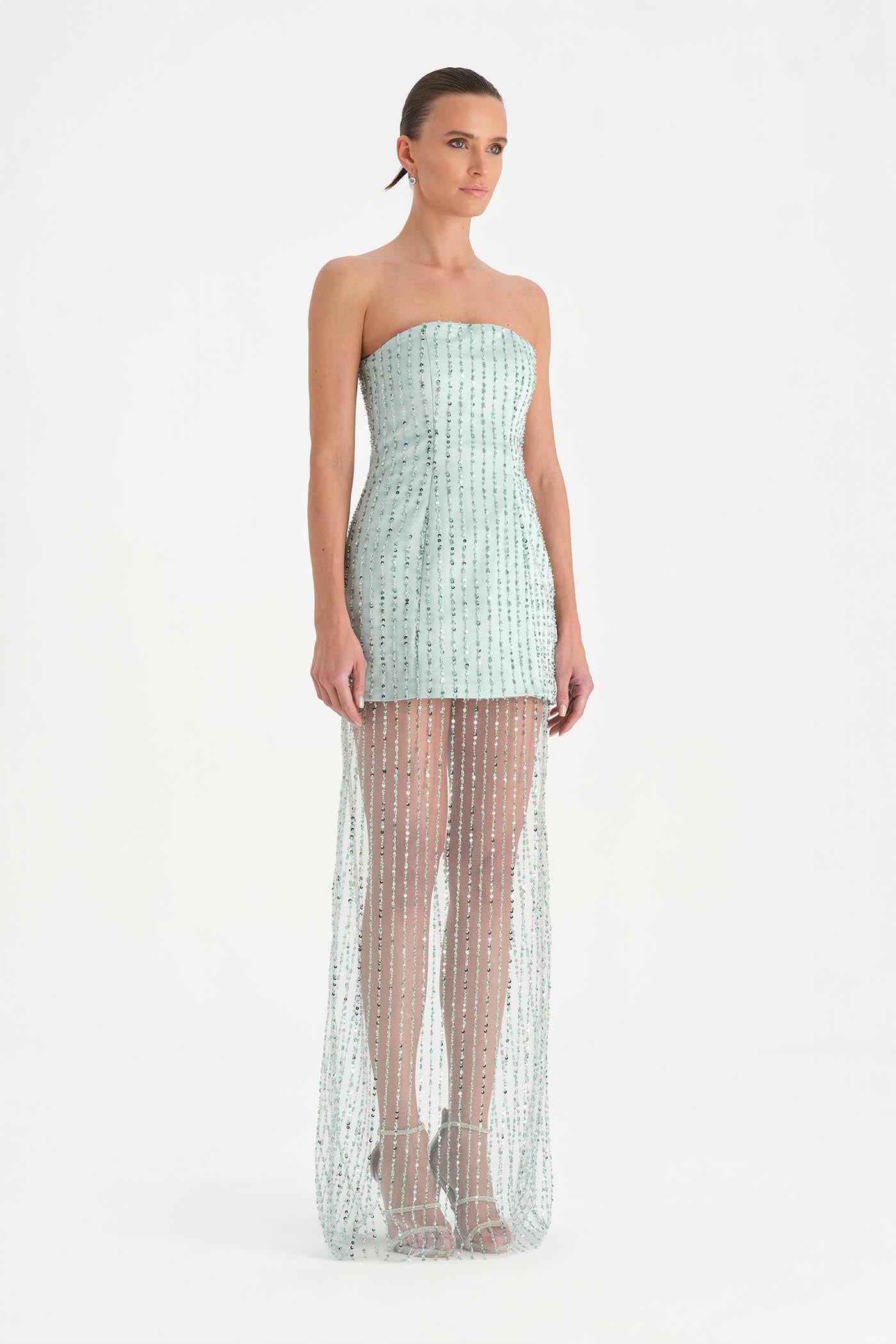 Straplez Taşlı Tül Abiye Elbise - 26053C