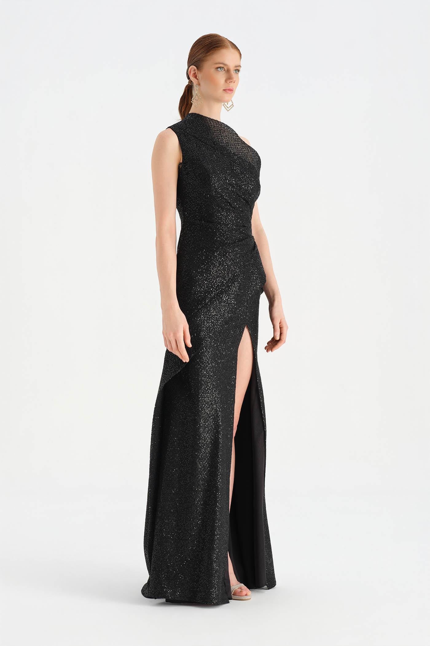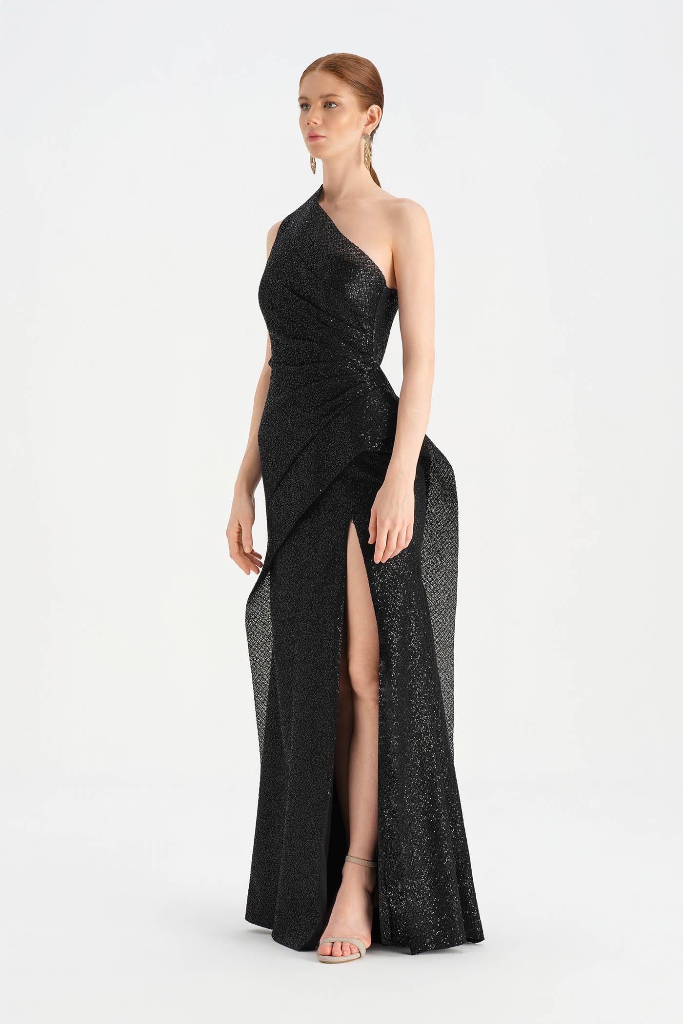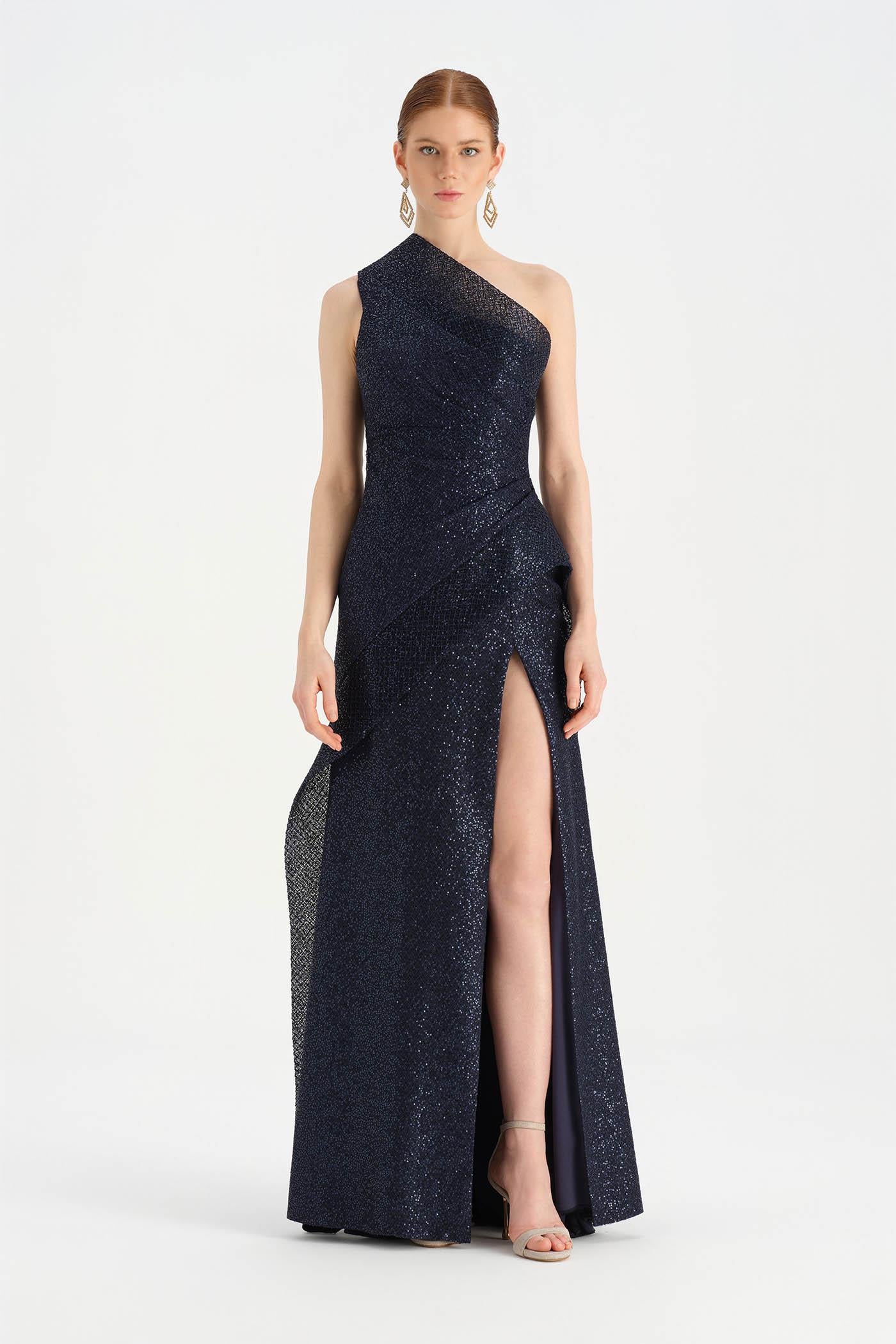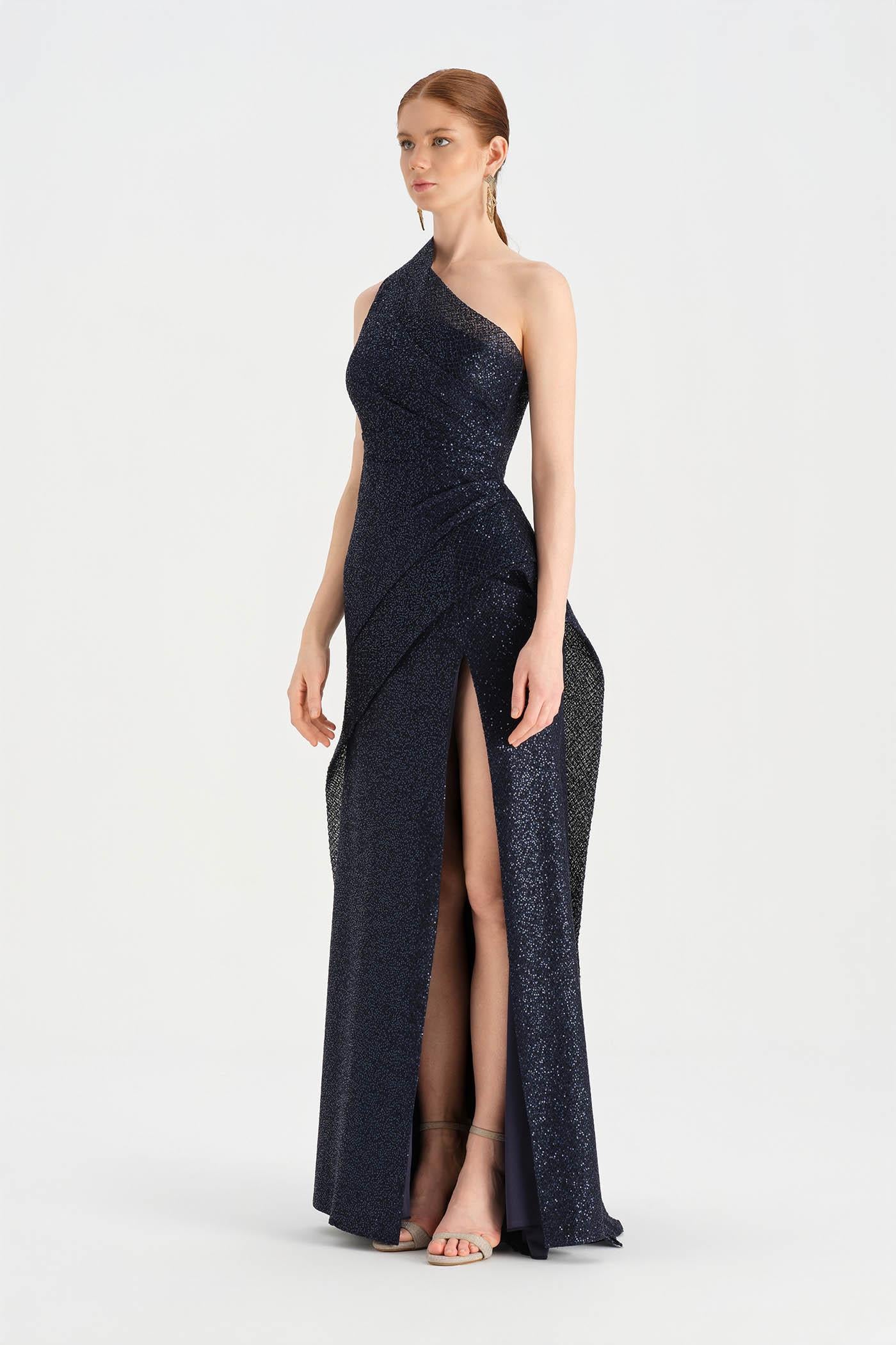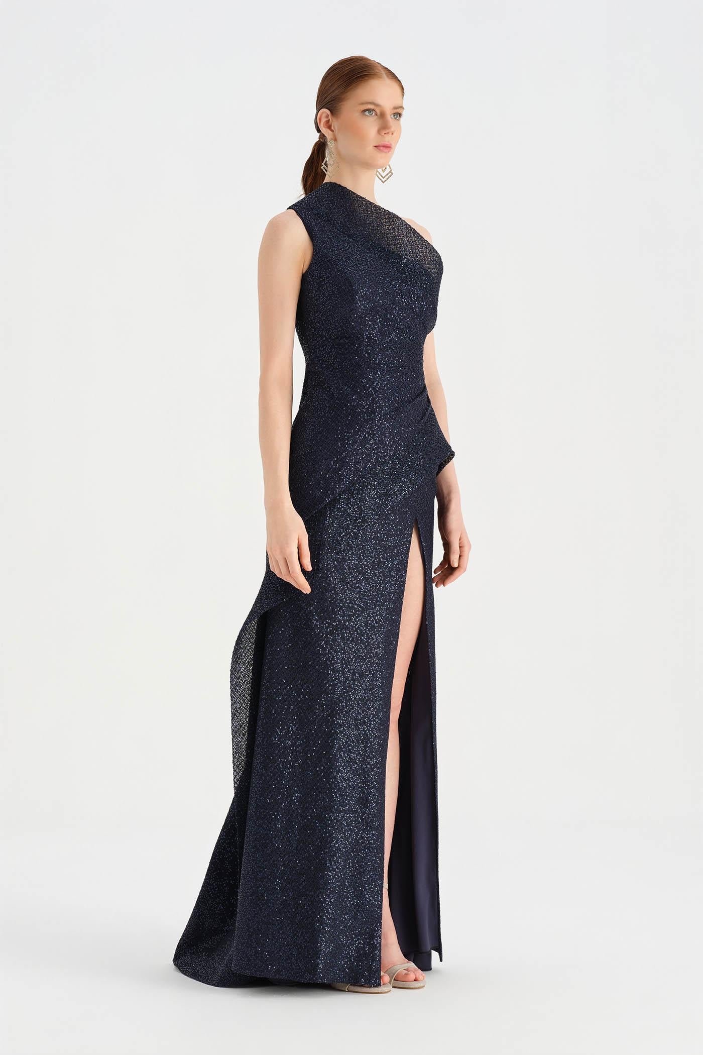Tek Omuzlu Yırtmaçlı Abiye Elbise - 26003C Yorumları