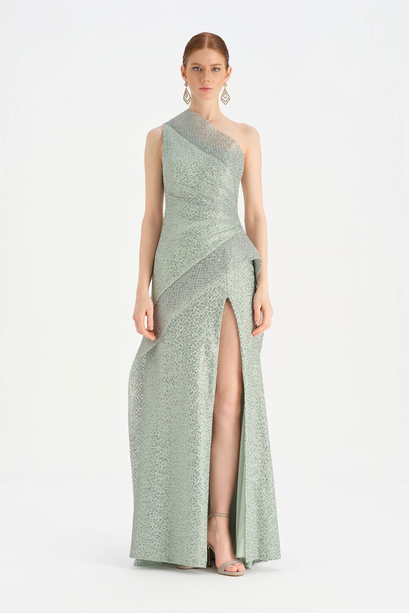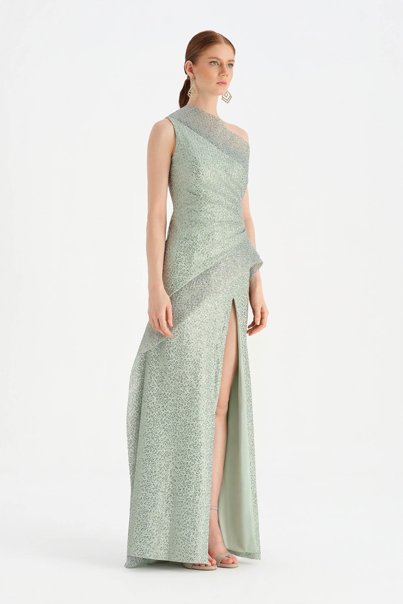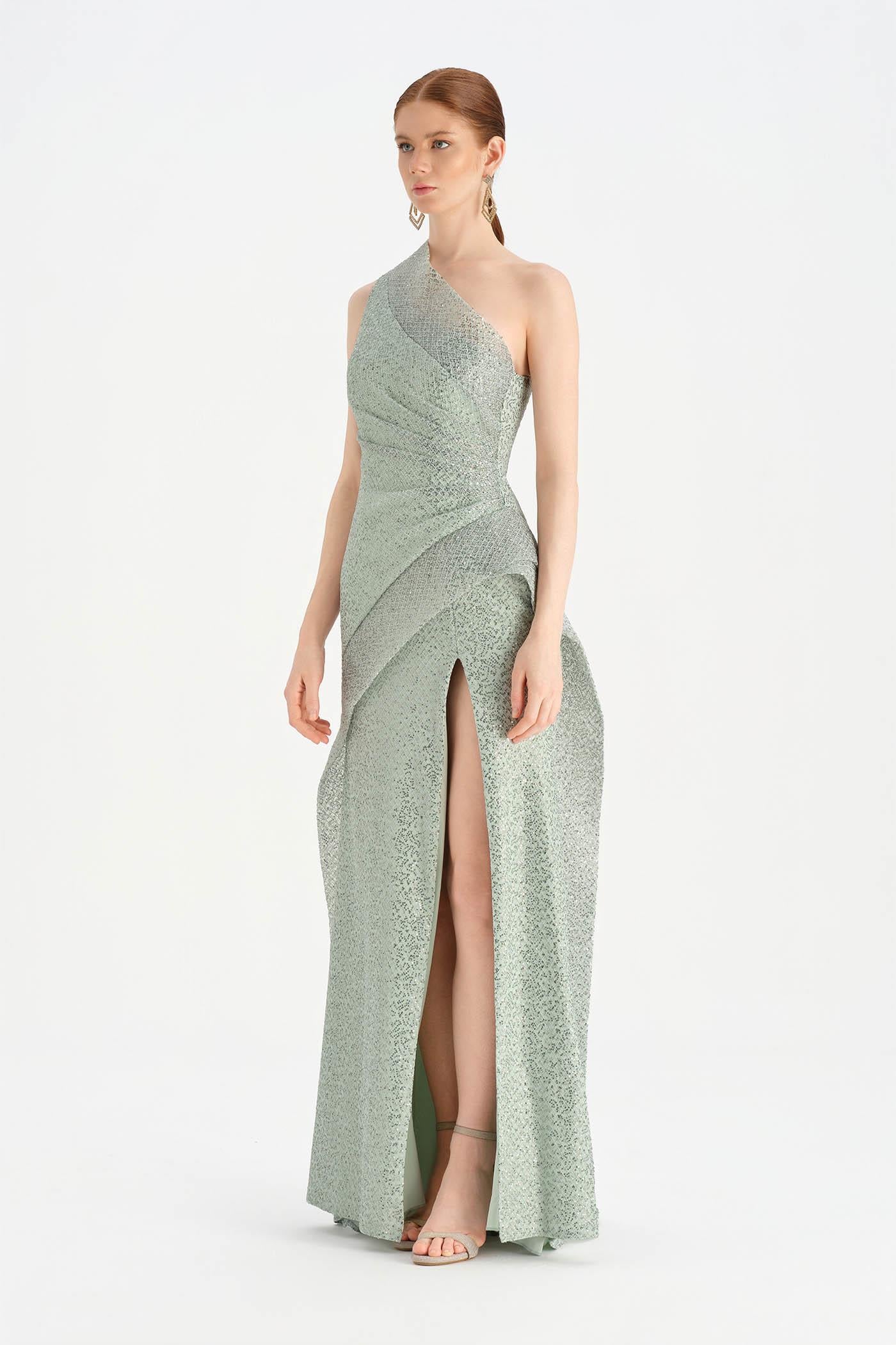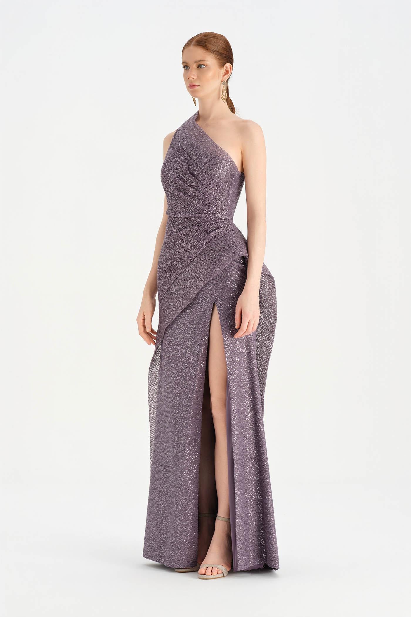Tek Omuzlu Yırtmaçlı Abiye Elbise - 26003C