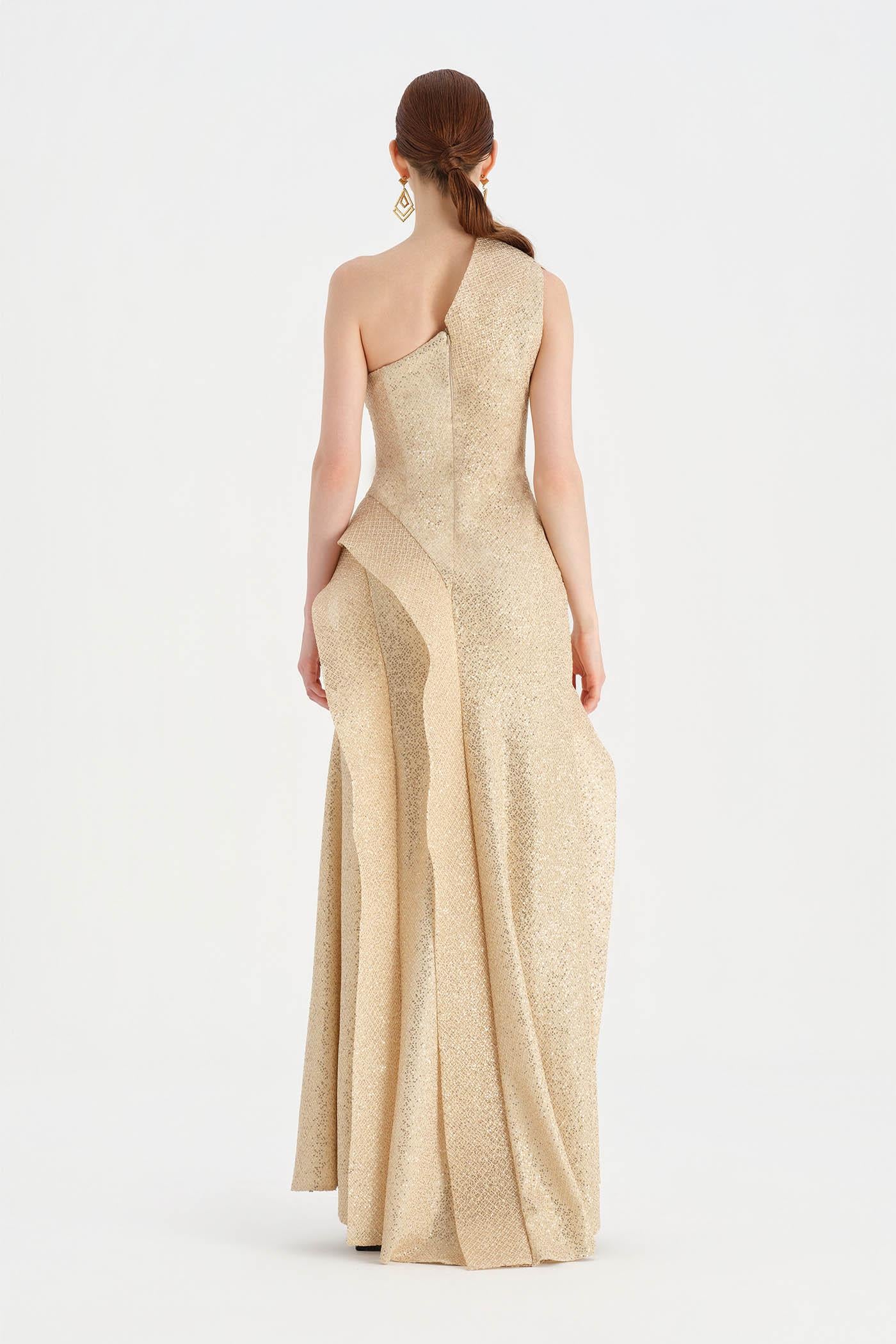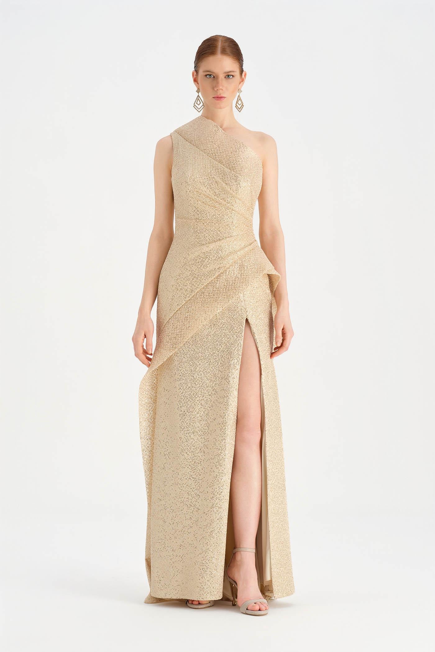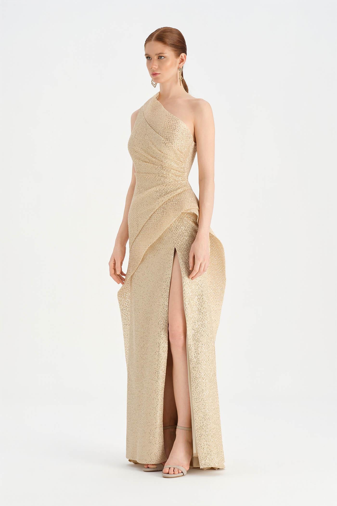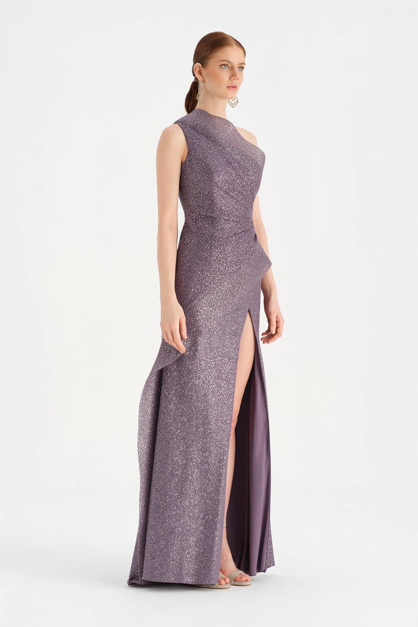 Tek Omuzlu Yırtmaçlı Abiye Elbise - 26003C